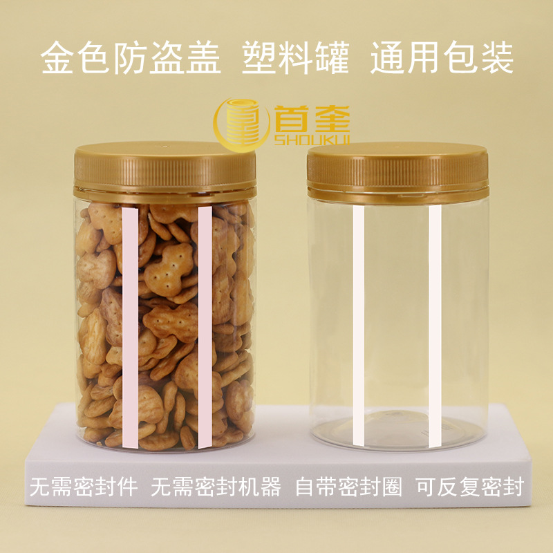 プラスチック缶シール缶食品級ナッツプラスチックボトル金色の溝付き蓋枸杞包装缶透明petボトル