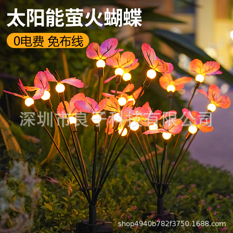太陽エネルギーの花の明かりの新型の屋外の防水の庭は芝生の地面の明かりのホタルの蝶の明かりの雰囲気のイルミネーションを飾ります。