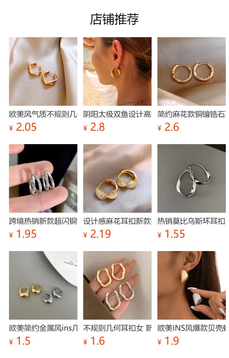 欧米のシンプルな金属風ins幾何学的な耳ボタンの高級感があります。
