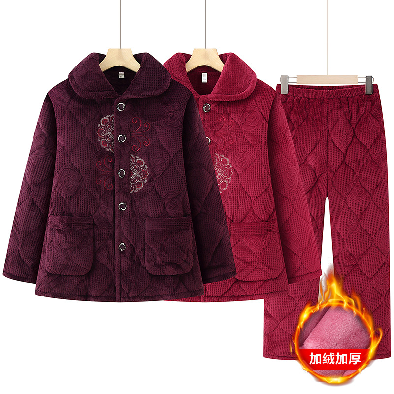 中老年人冬装睡衣女奶奶加绒加厚棉衣棉裤套装妈妈超厚保暖居家服
