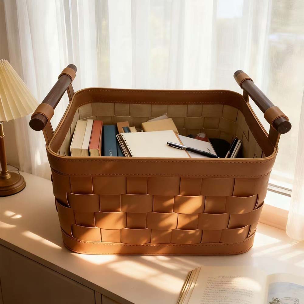 北欧織り革スクエア収納バスケットリビングルームリモコン収納バスケットシンプルで見栄えの良いデスクトップペンホルダー