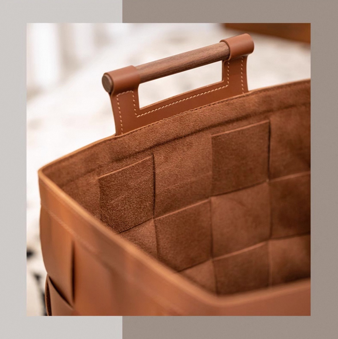 手作業の皮革編み収納かご整理フードの間のソフトデザインのインテリア
