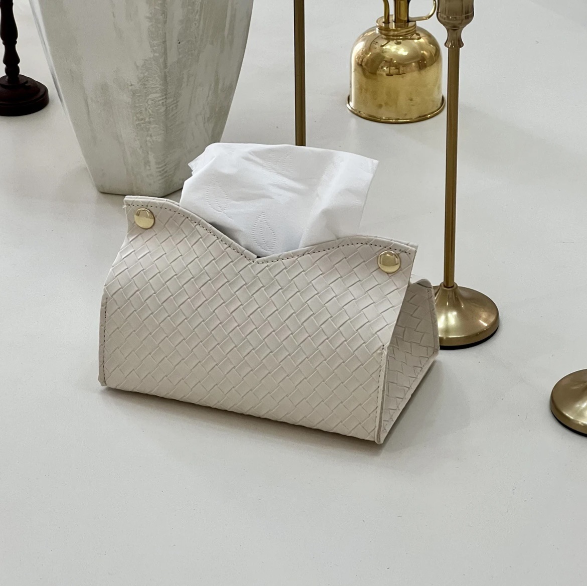軽くて豪華な編み物の紙のティッシュの箱の客間のデスクトップの紙の箱の北欧風の皮革は紙の収納箱を引き出します。