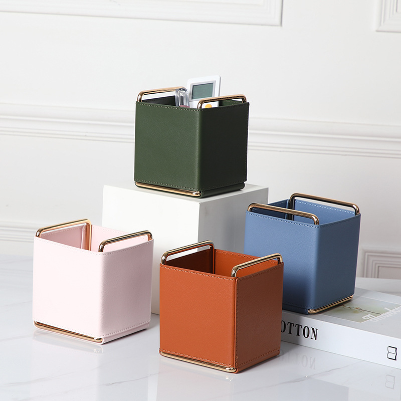 熱い販売北欧 INS スタイル織革デスクトップ収納バスケットリモコン収納ボックス金属化粧ブラシペンホルダー