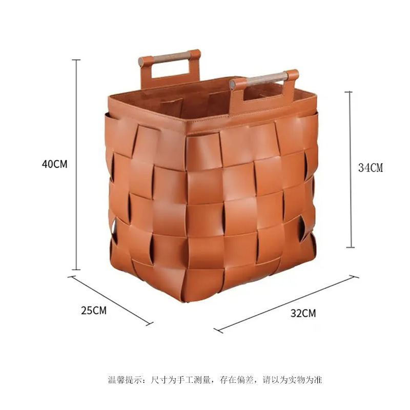 Hermだけではありません. カラー革ゴミ箱手編み寝室客間収納汚れかご花瓶花器
