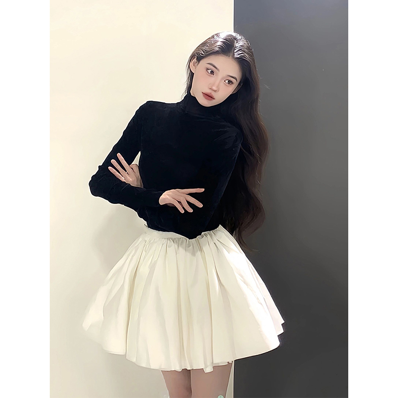 ヘボン風黒a字蓬蓬蓬半身スカート女2024秋冬感気質修身痩せショートスカート