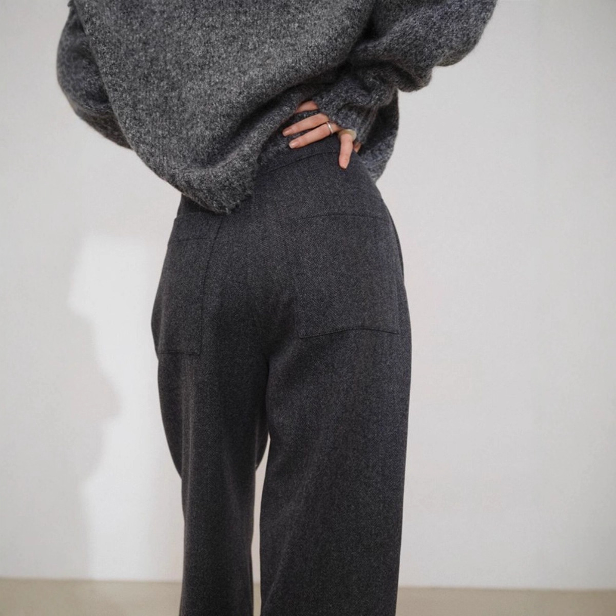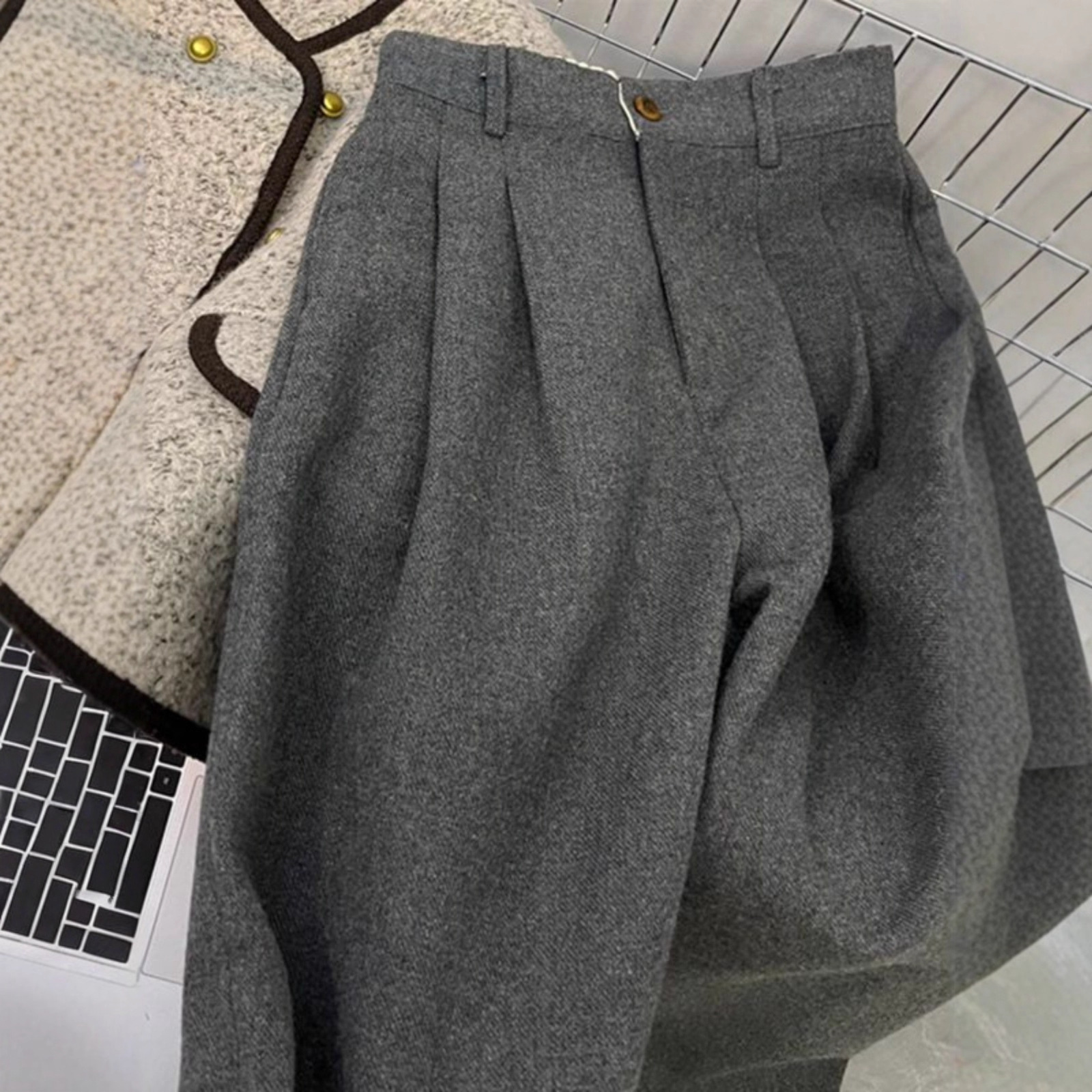 格雷系穿搭显高显瘦深灰色毛呢裤2025秋冬新款高腰厚实阔腿西装裤
