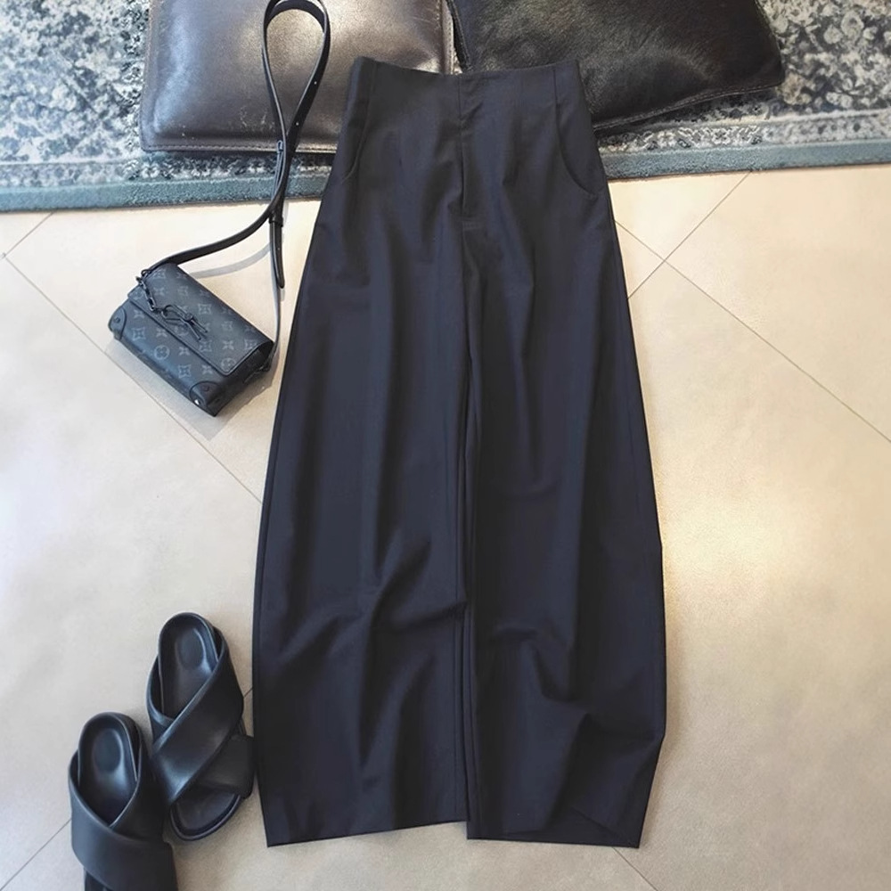 日本琎口精纺~黑色高腰茧型立裁香蕉长裤女2025早春设计感裤子
