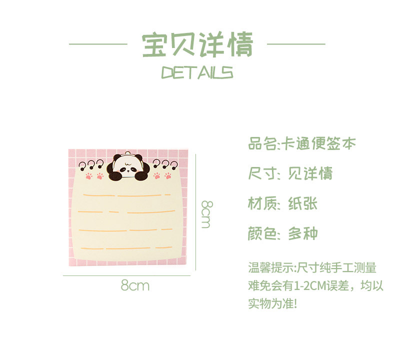 パンダの便箋は粘着性のないアニメの付箋を裂くことができます。