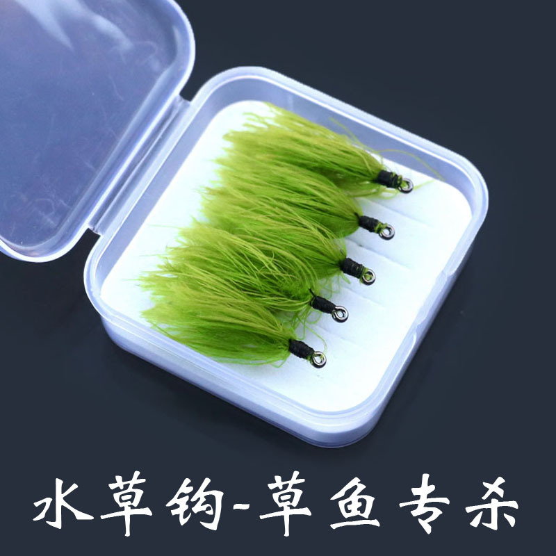 ルアーは生の苔の水草をまねてハエを飛ばします。