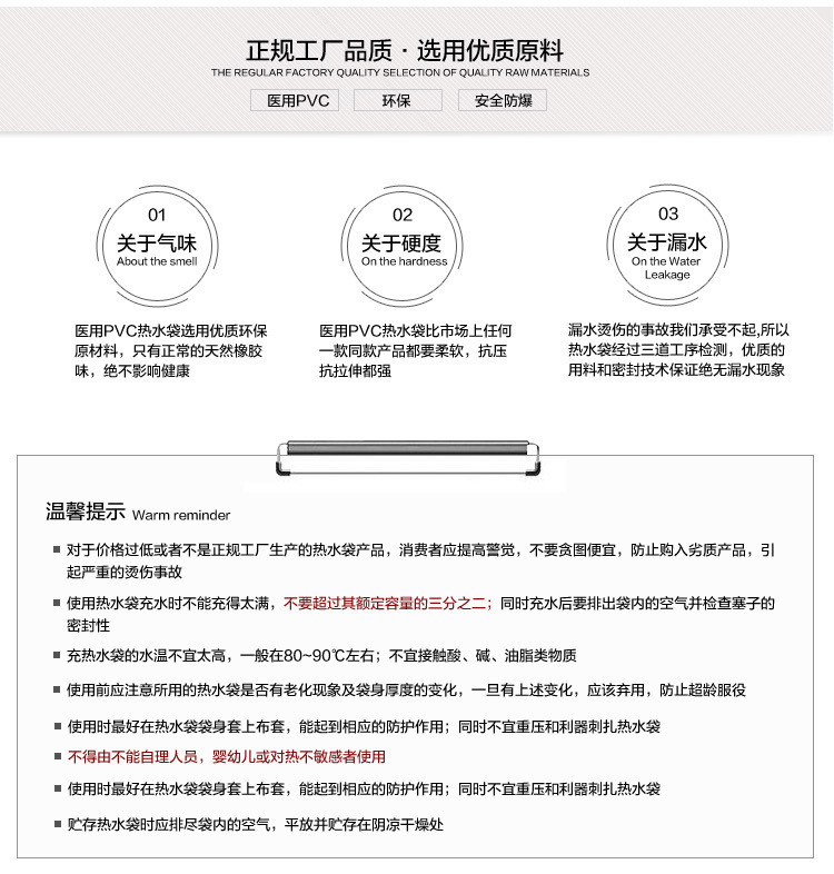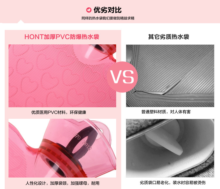 クロスボーダー高密度500ml1000mlPVC充水湯たんぽ防爆圧湯たんぽ厚手防爆工场