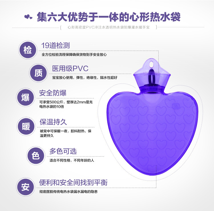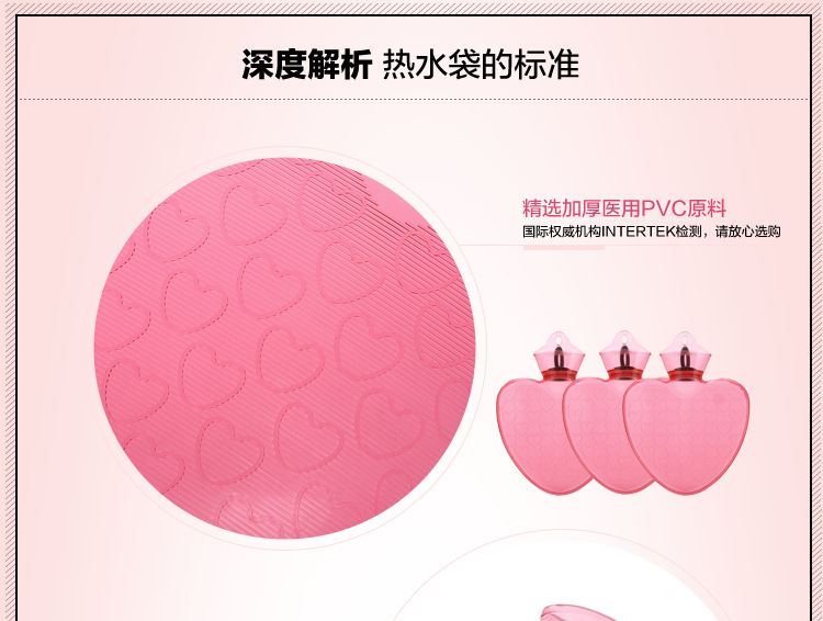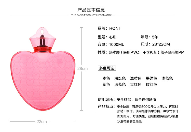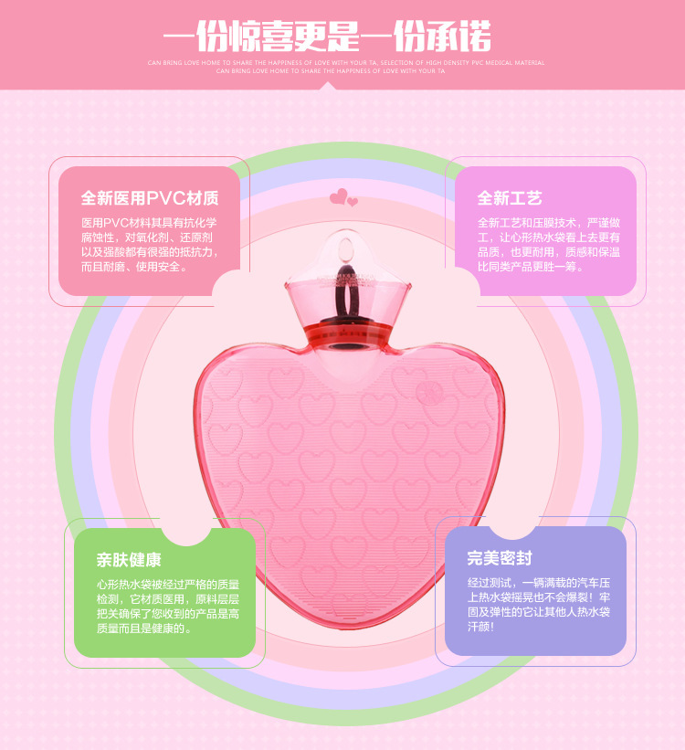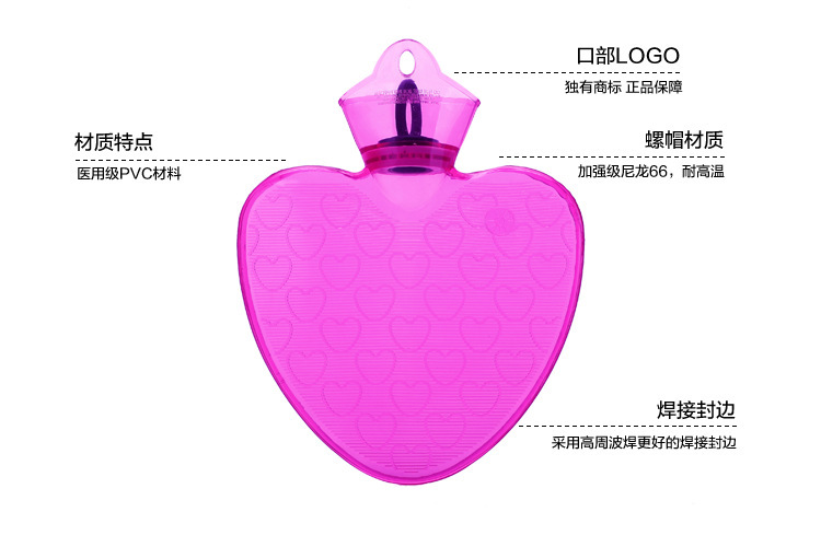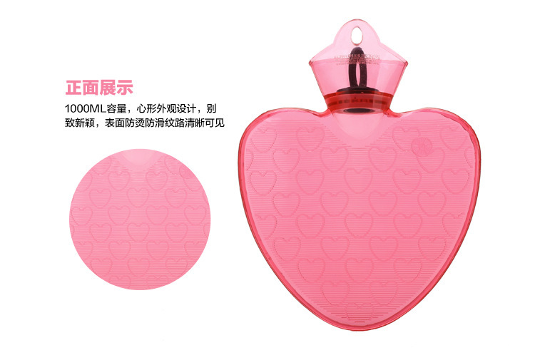 クロスボーダー卸売り1000mlハート型湯たんぽ暖手宝注水式大容量厚さ防爆PVC灌水金