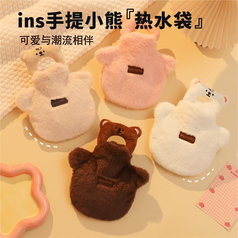 厂家货源手提小熊暖水袋注水热水袋小号卡通毛绒便携手握式暖手宝