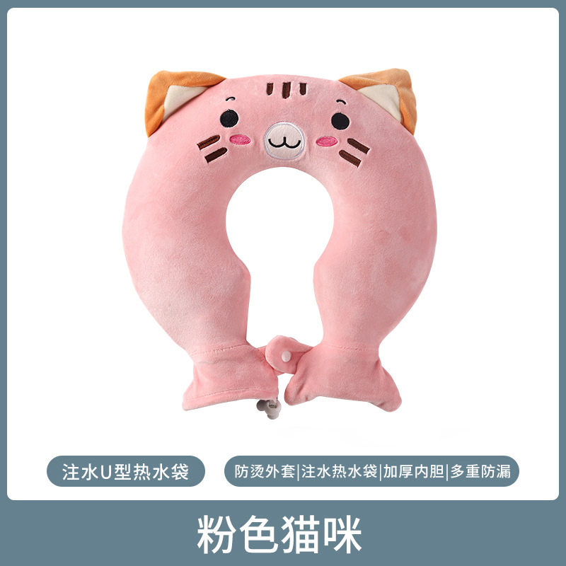 国境を越えた水充填式両頭厚型U字型頸椎肩と首の温湿布、首を保護する厚型防爆ネックプロテクター、PVC水充填湯たんぽ