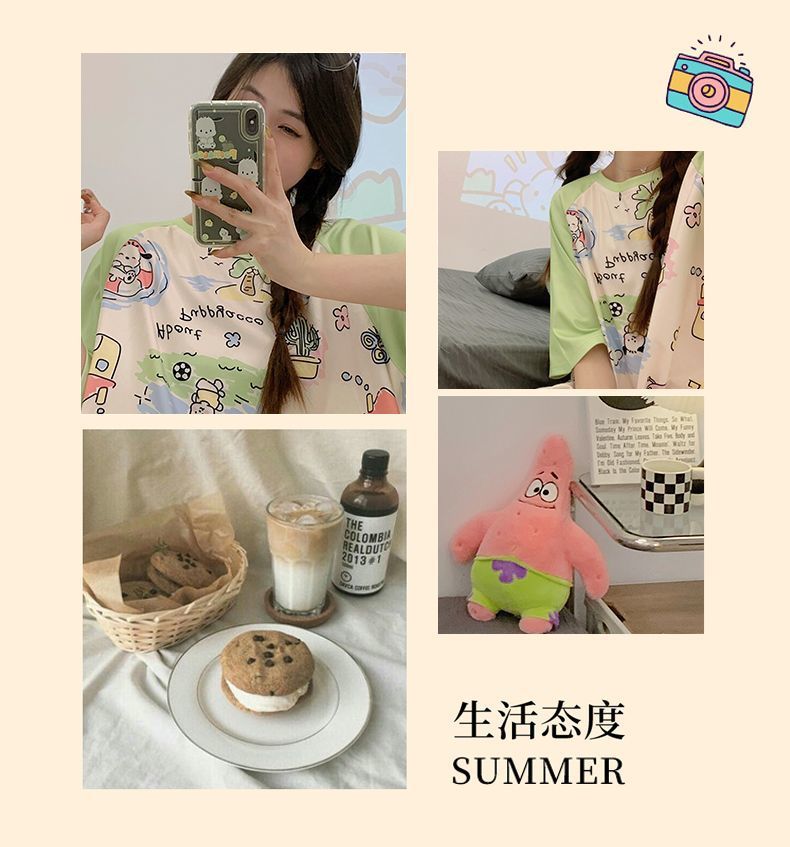 パジャマの女性は夏に寝ます。半袖で甘くて可愛いです。