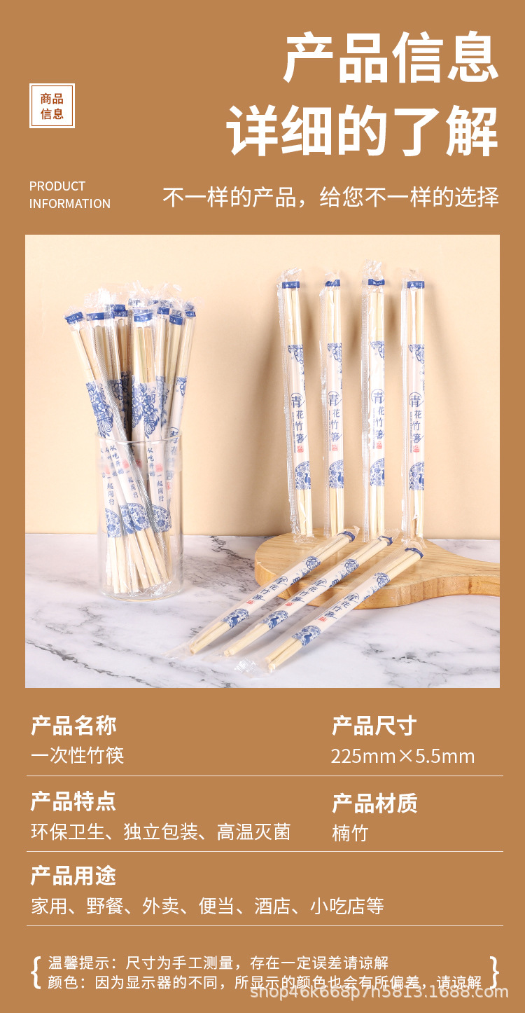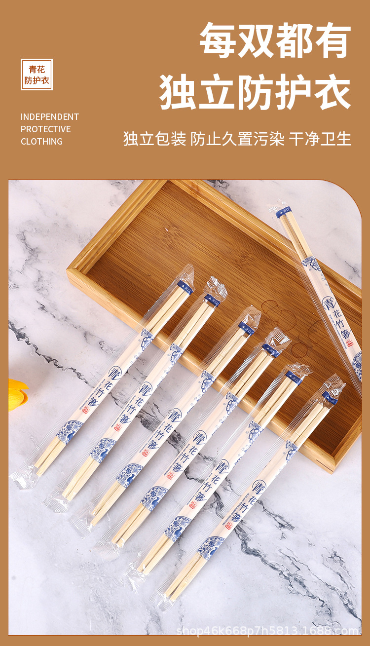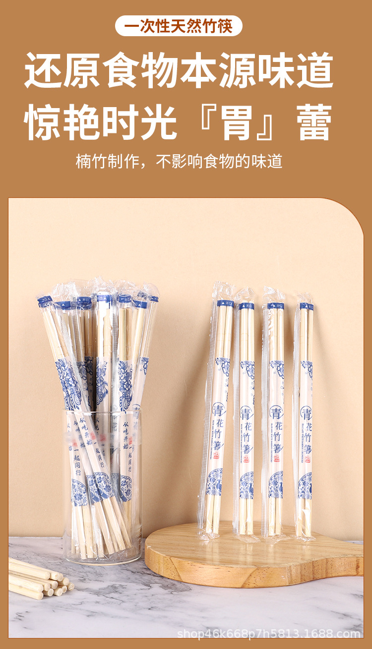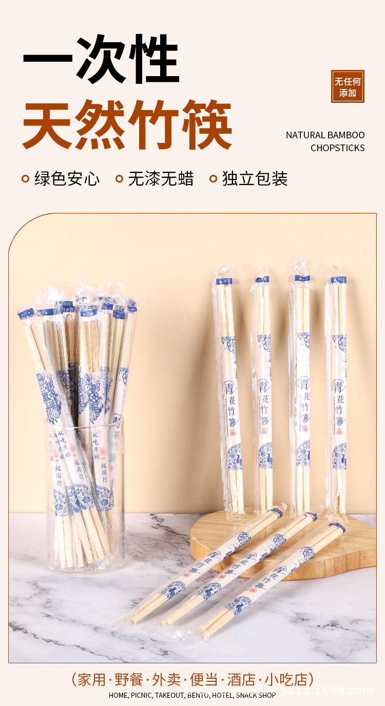 家用一次性竹筷加粗加长独立包装筷子24cm方筷外卖打包一次性圆筷