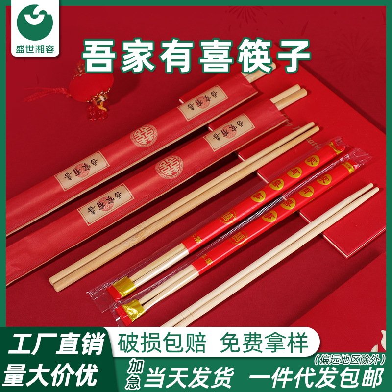 結婚割り箸問屋用結婚祝い酒席赤色喜字酒宴食器用品使い捨て竹箸