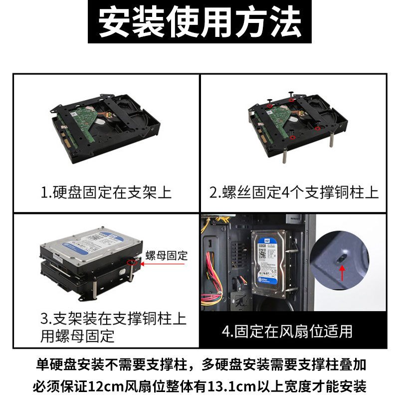 电脑机箱风扇位托架12cm转硬盘位SSD机械硬盘支架多叠加NAS外置架