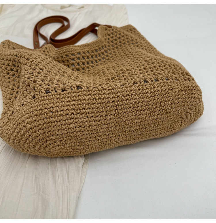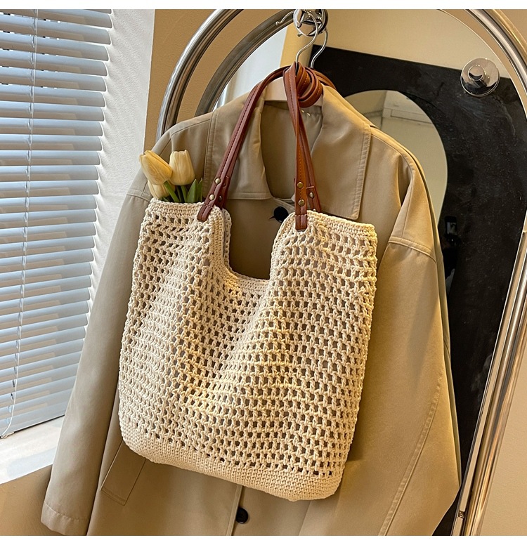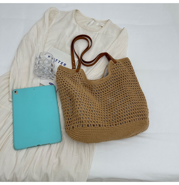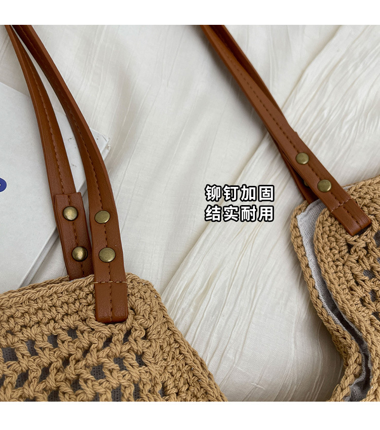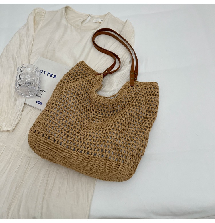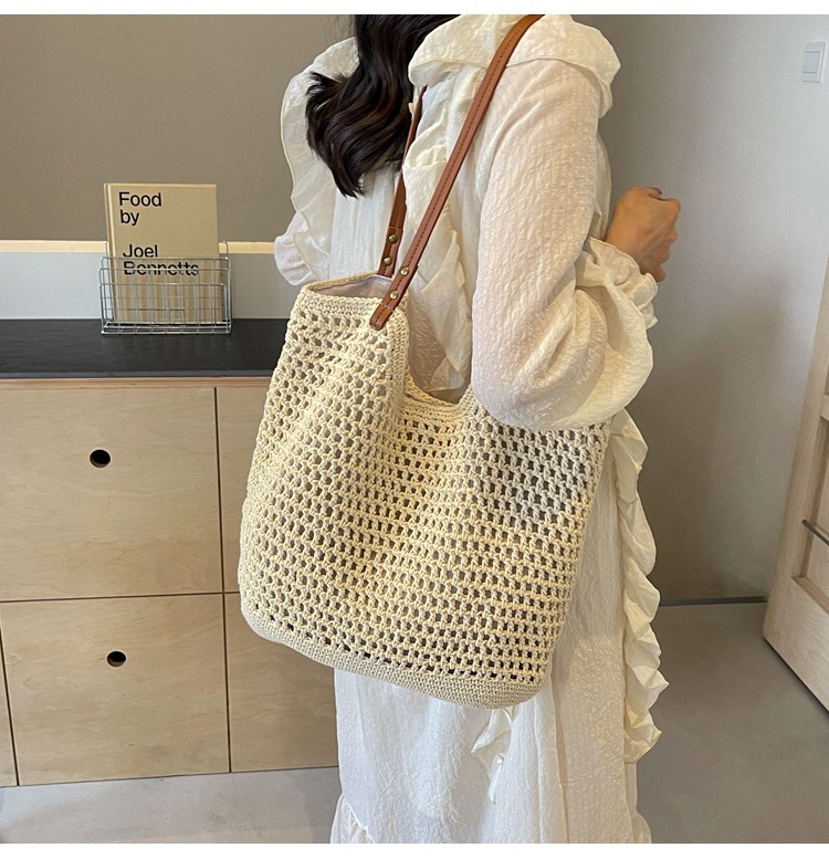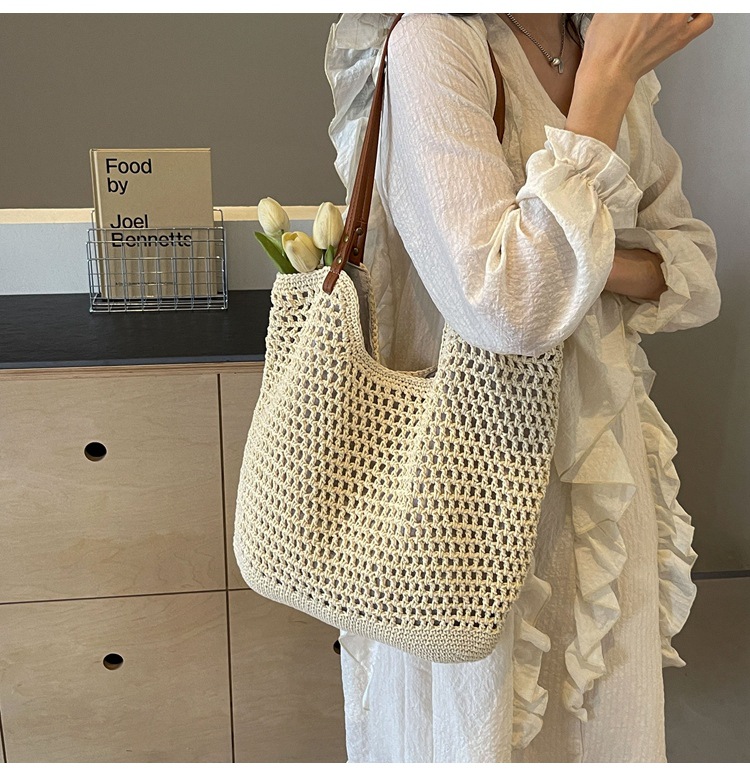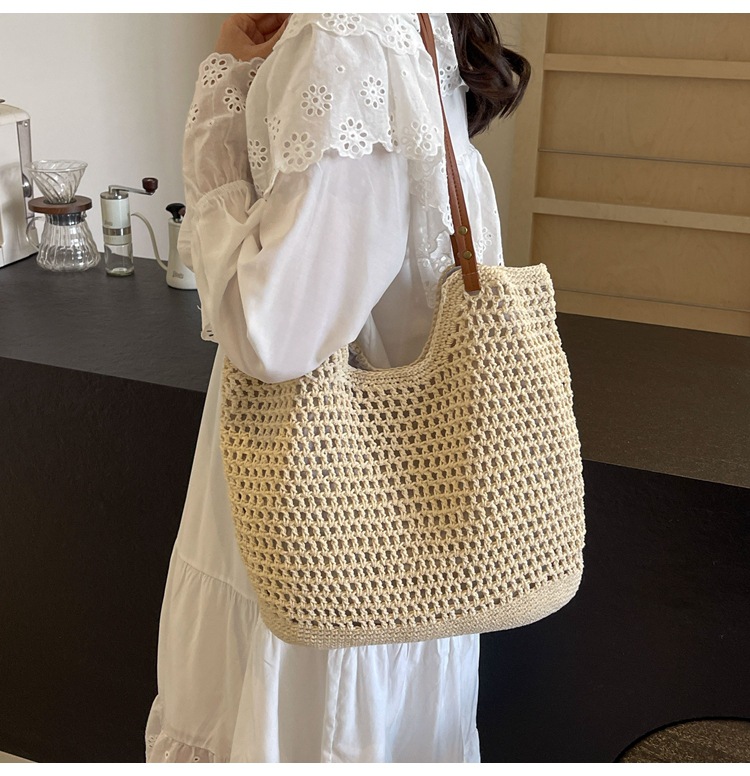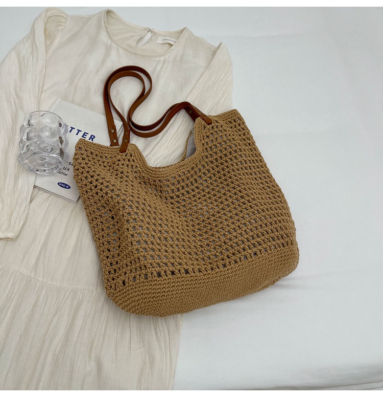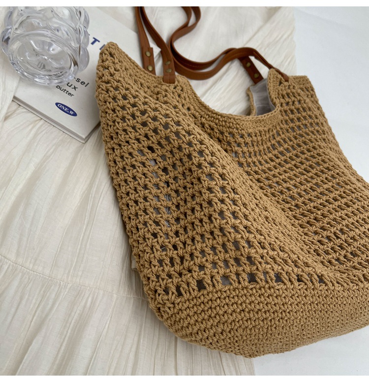 大容量バッグ女性2025新型百合シングル肩海辺休暇ビーチバッグ編み草編通勤バッグ