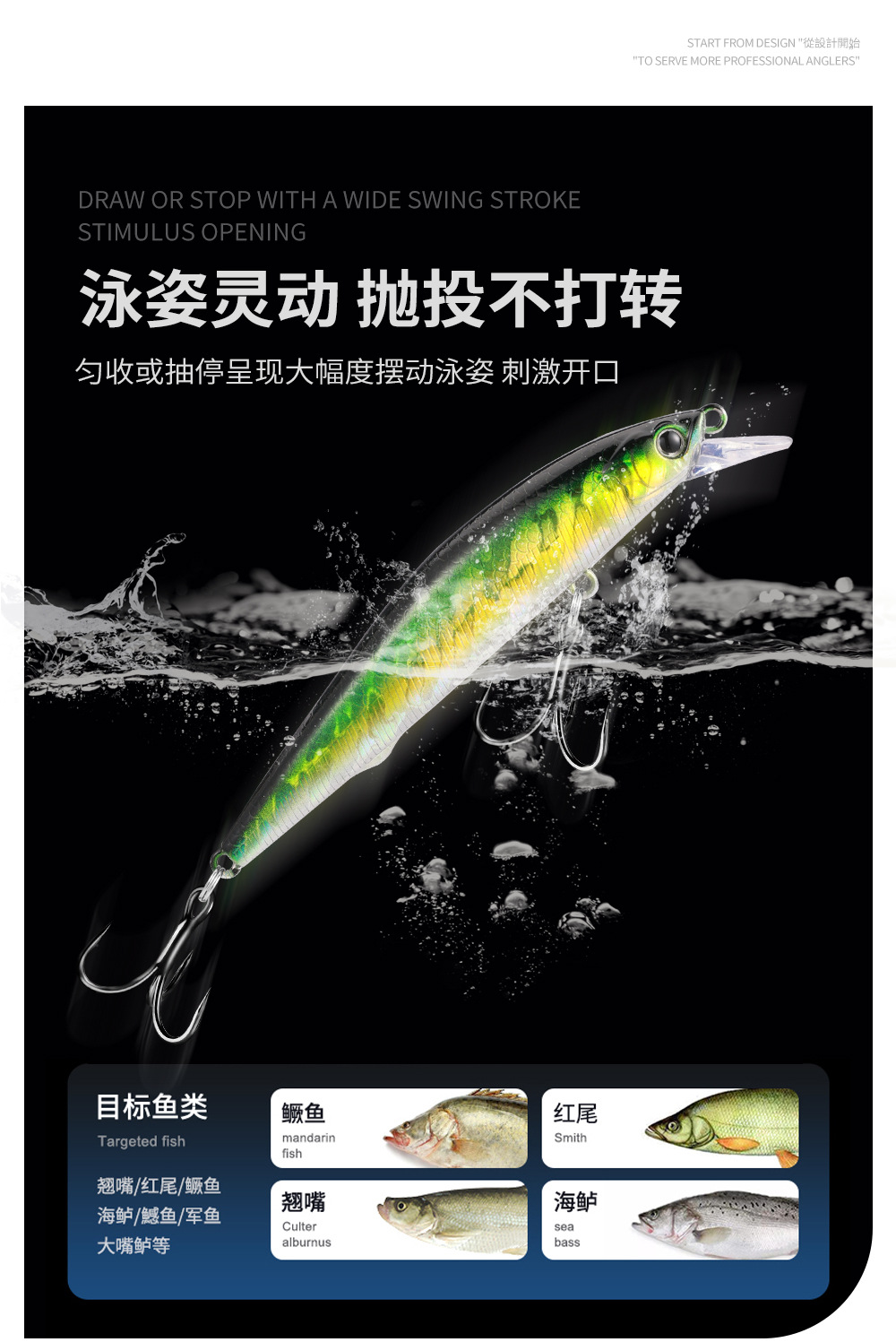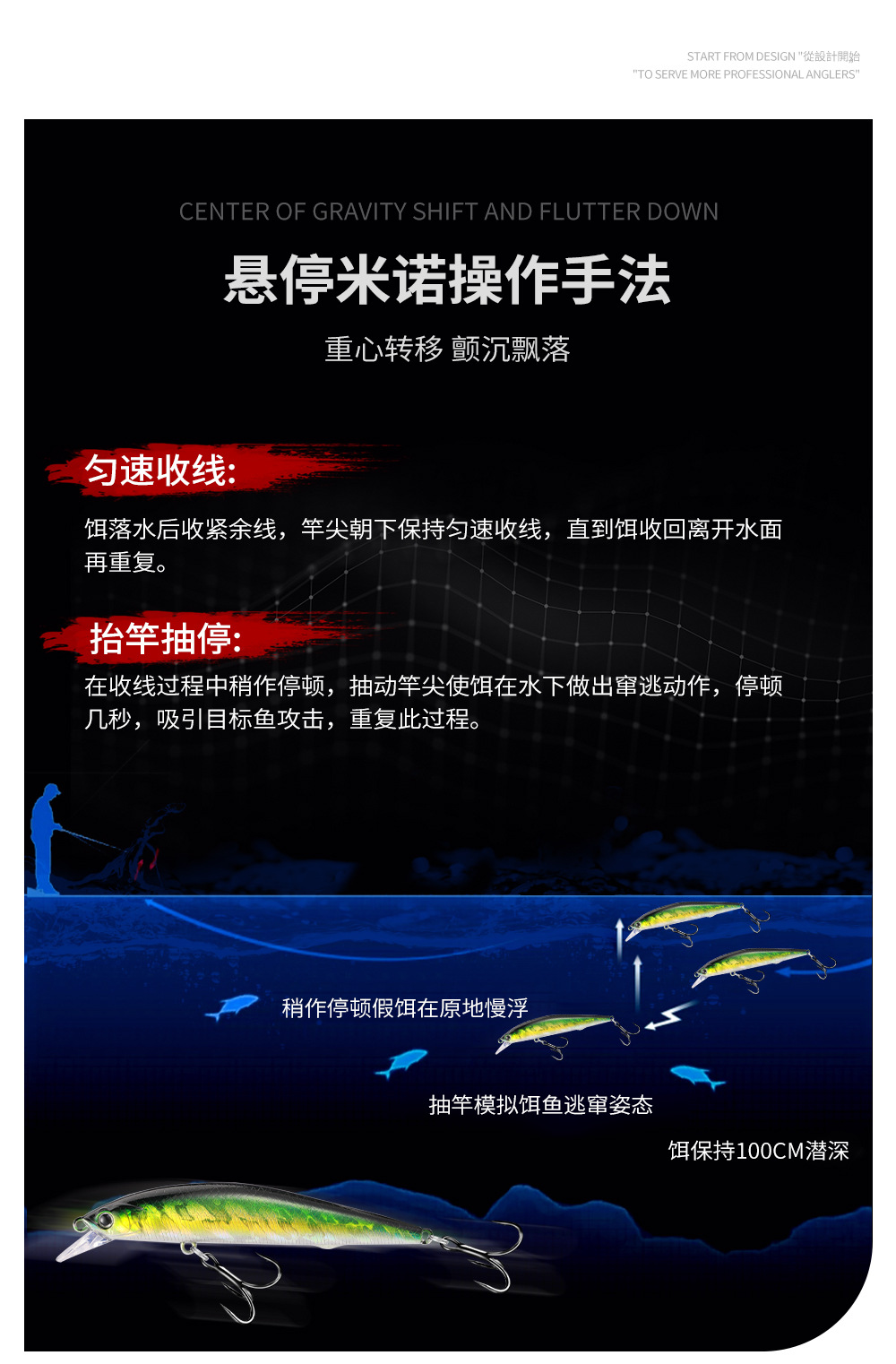 远投路亚饵悬停斩泊鲌米诺死飞重心转移系统悬浮硬饵翘嘴鱤鱼鲈鱼