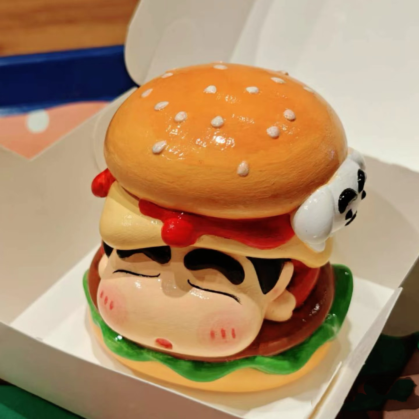 ハンバーグクレヨンしんちゃんハンバーグ石膏塗装人形3d立体人形団建手作り塗装石膏置物