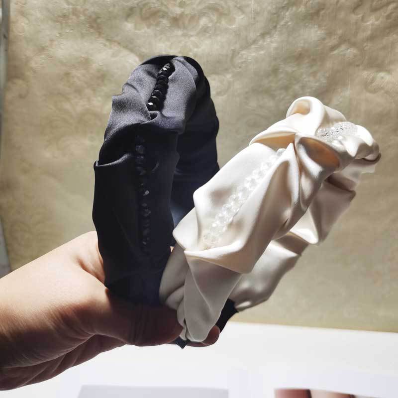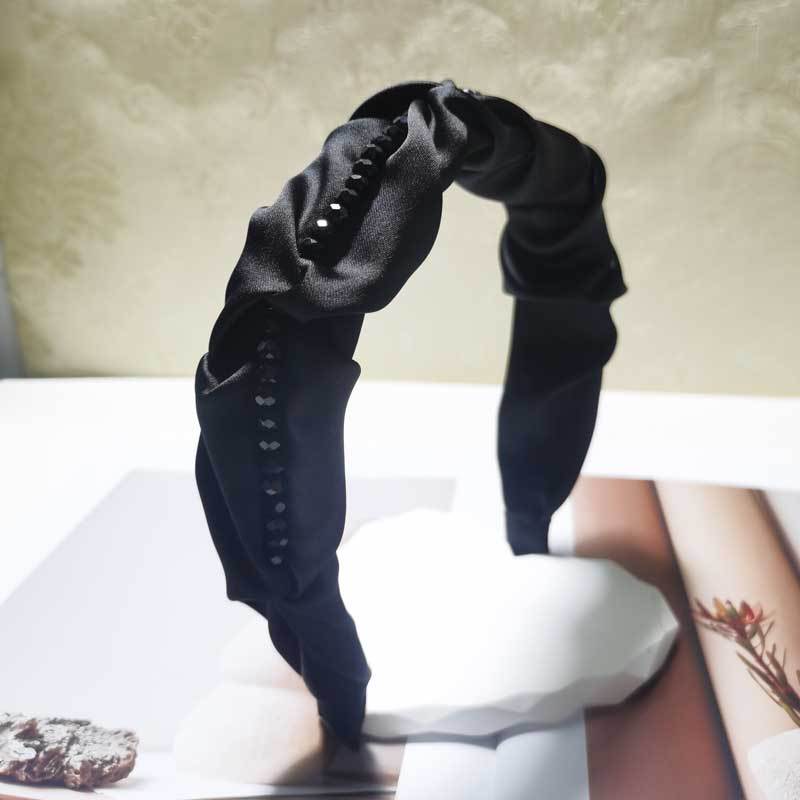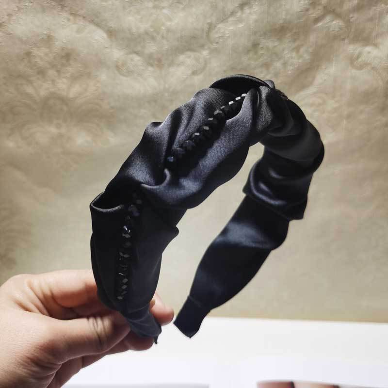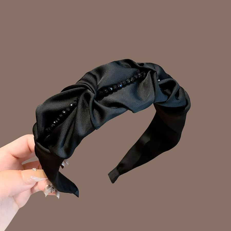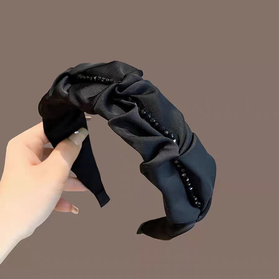 褶皱发箍女2026年新款水晶串珠头箍百搭气质高颅顶黑色洋气压发卡