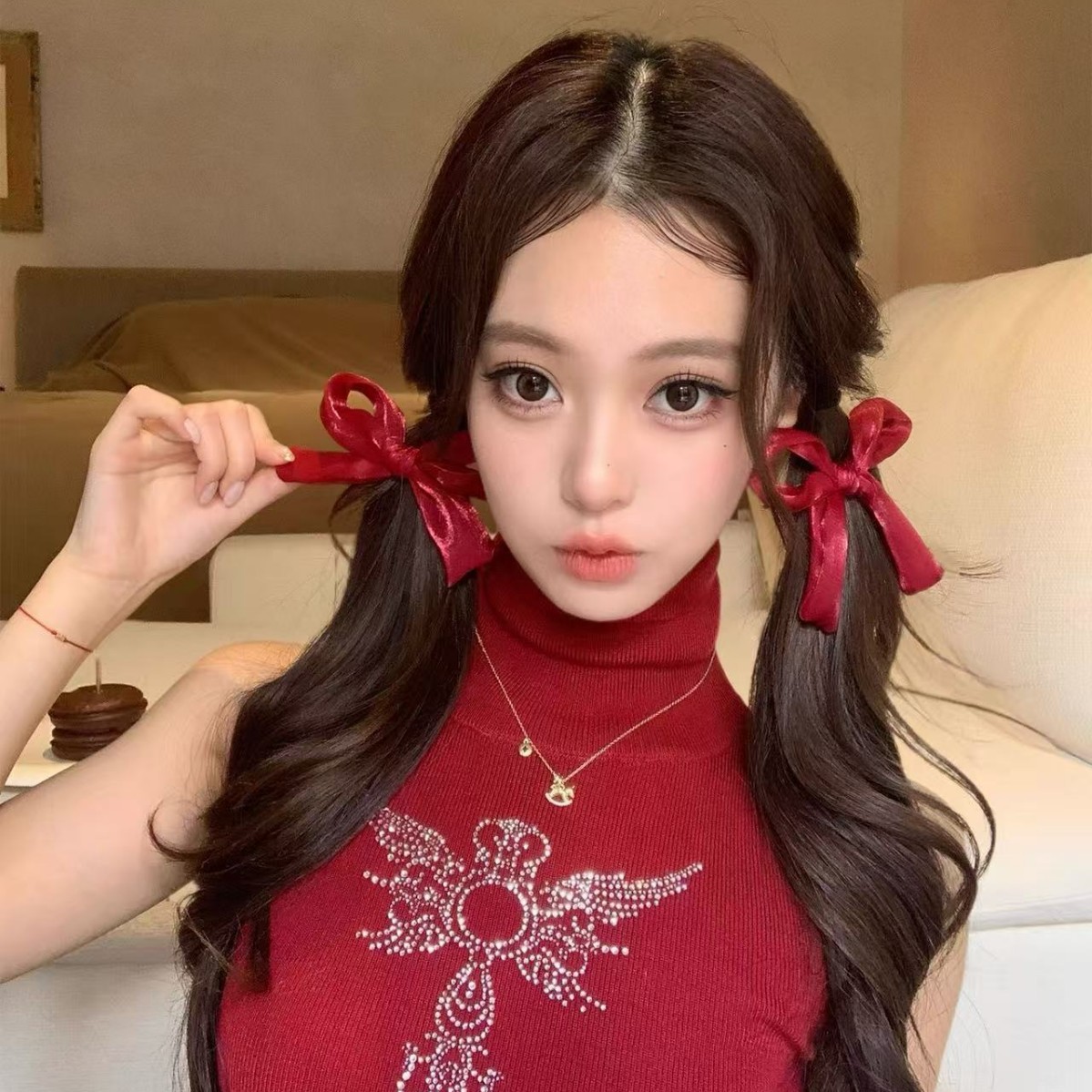 显白红色蝴蝶结发夹女2025新款新年圣诞侧边碎发刘海夹百搭发头饰