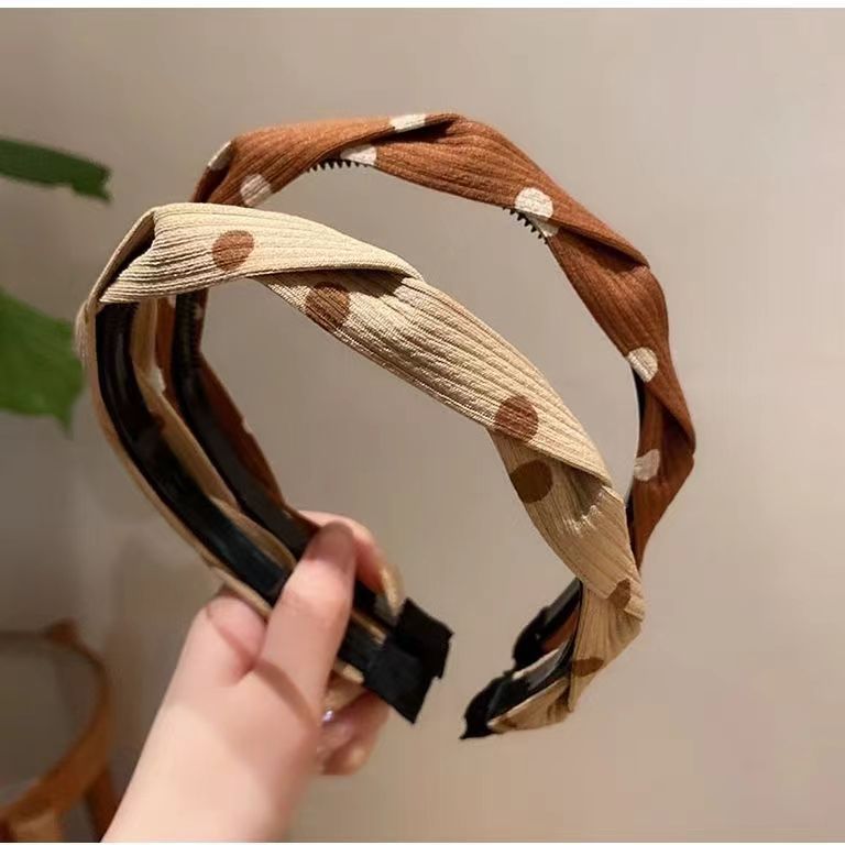 波点カチューシャ高級2021布芸韓国レトロな網のカチューシャの髪飾り