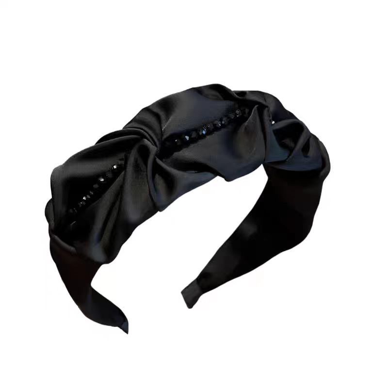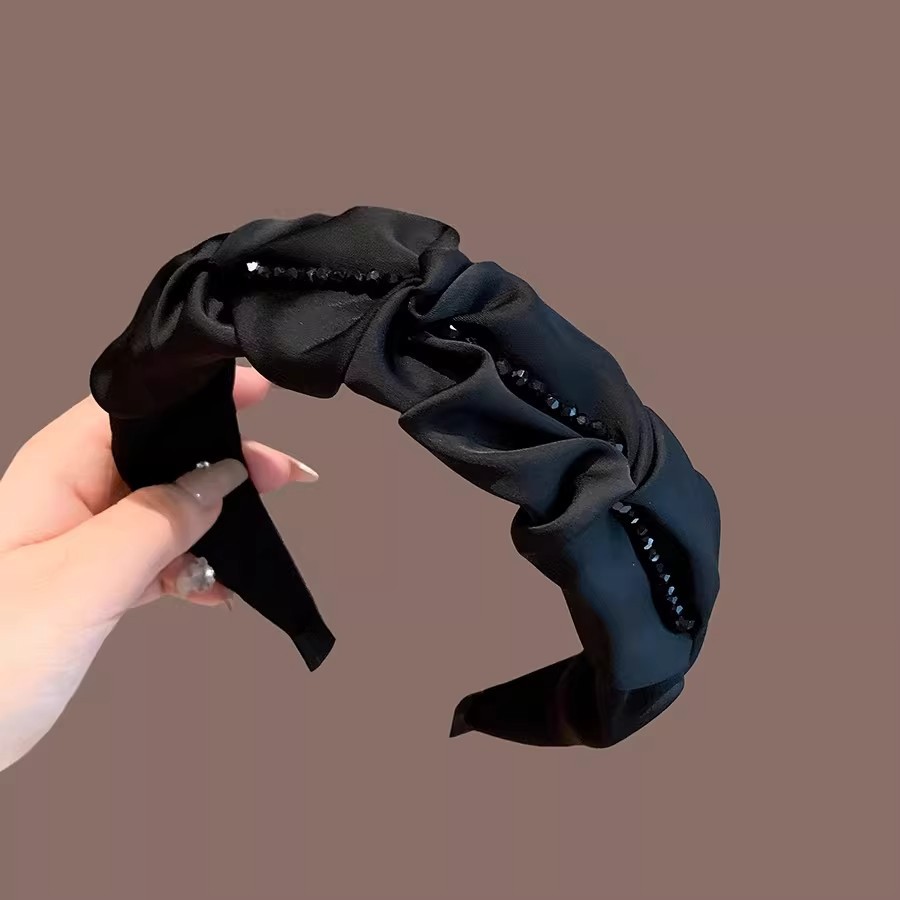 褶皱发箍女2025年新款水晶串珠头箍百搭气质高颅顶黑色洋气压发卡