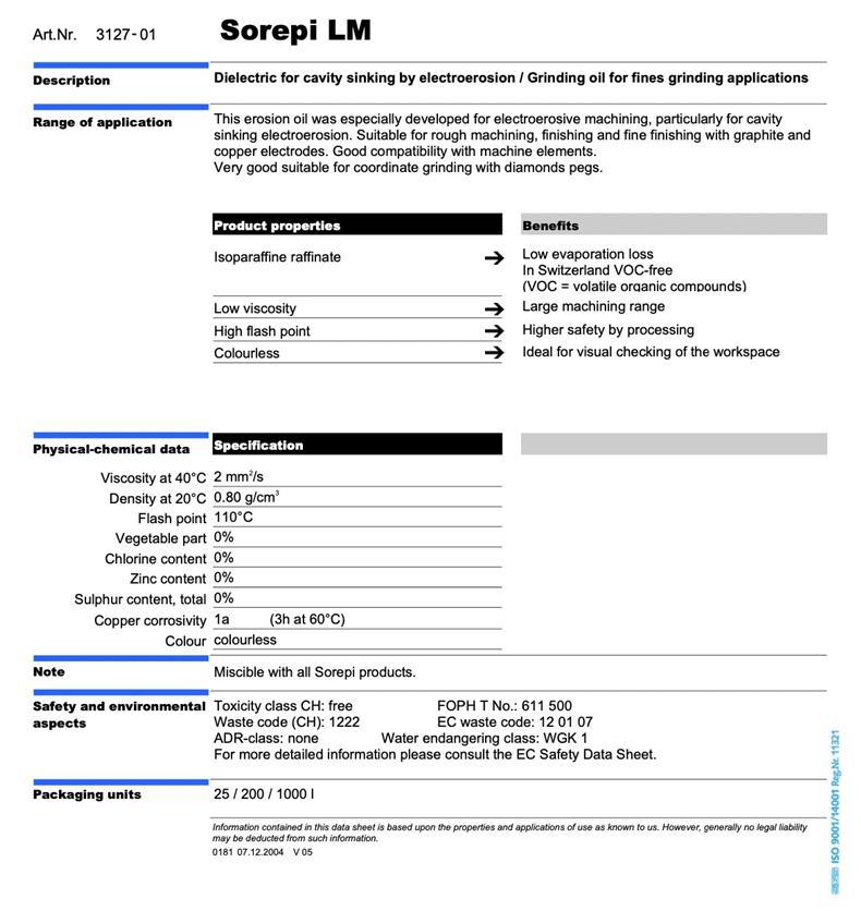 スイスバルソLM絶縁オイルブラザーソレピ   LM高性能スパーク加工専用オイル