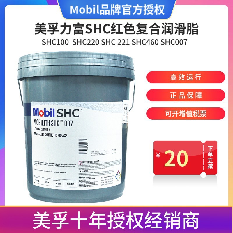 モービル力富SHC100 007 220号高温赤色リチウム基脂宝力達EM軸受高温専用脂