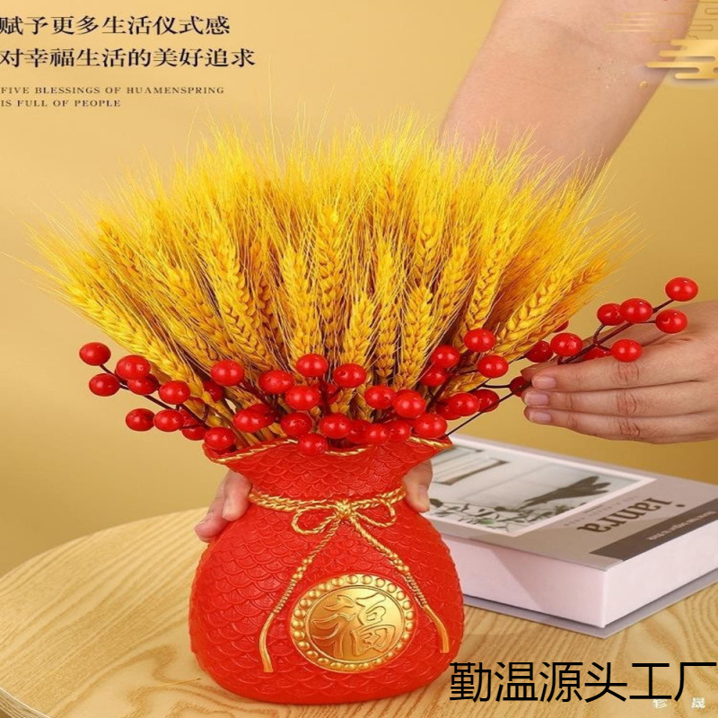 黄金大麦ドライフラワーブーケ福袋金袋リビングルーム装飾品黄金小麦穂装飾新築祝い造花