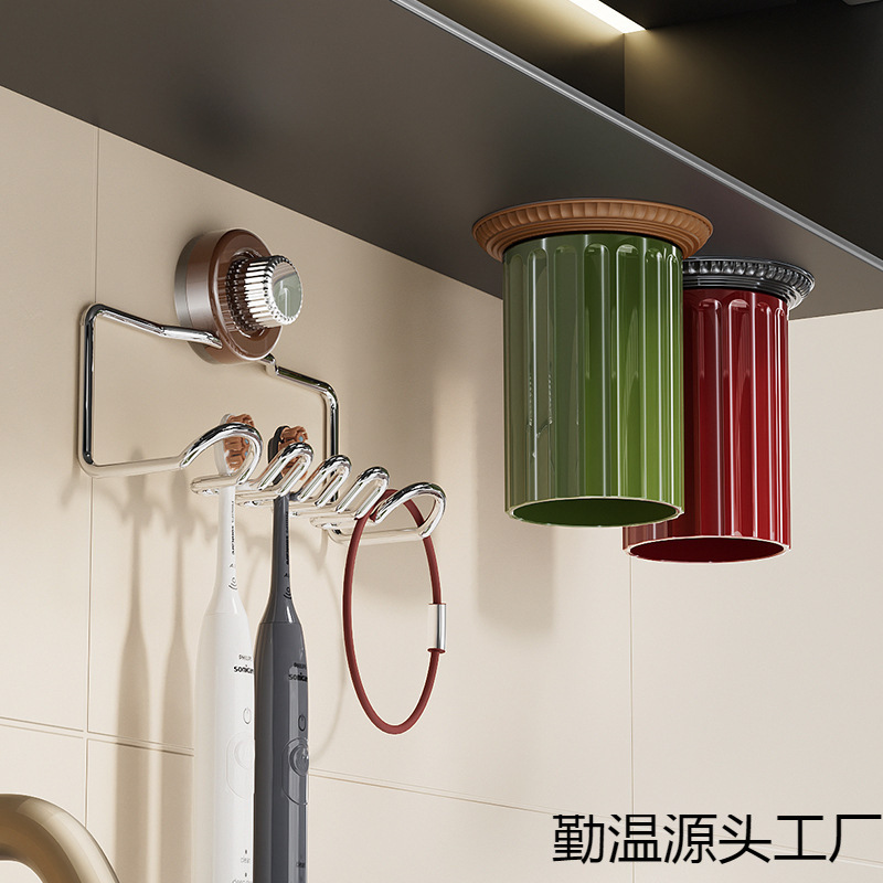 镜柜下磁吸牙刷架一家四口漱口杯吸盘免打孔沥水牙刷牙杯收纳架子