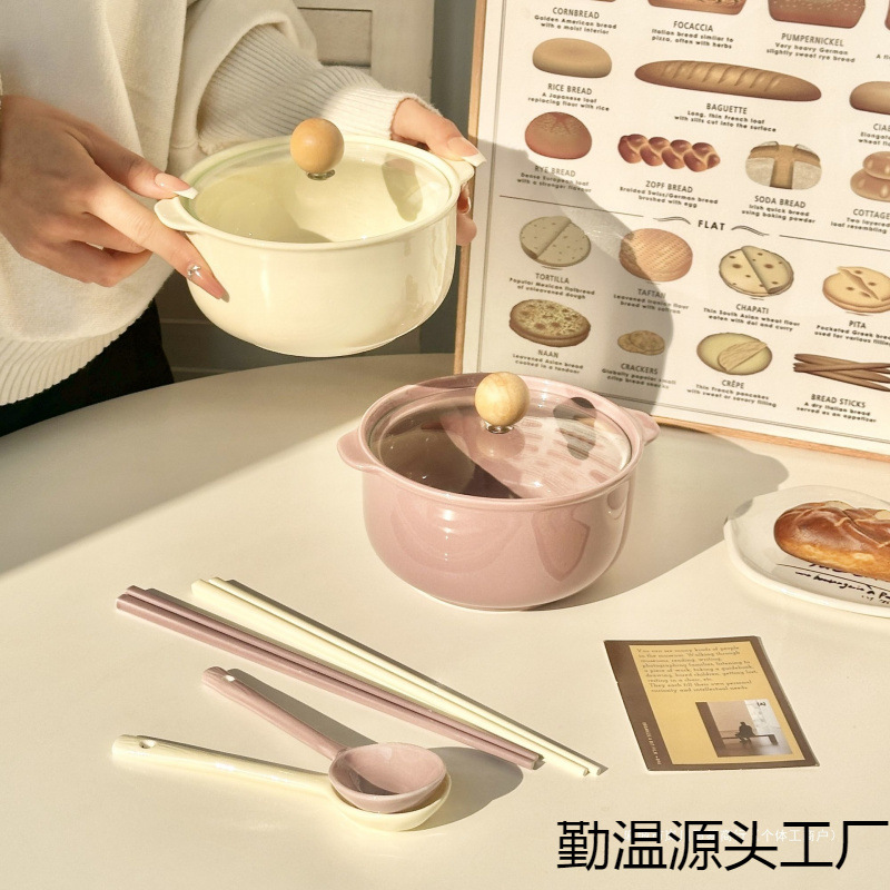 新しいins陶磁器のカップラーメンの学生寮のインスタントラーメンの碗の双耳のカップラーメンの碗は熱いナットの粉の碗がありません。