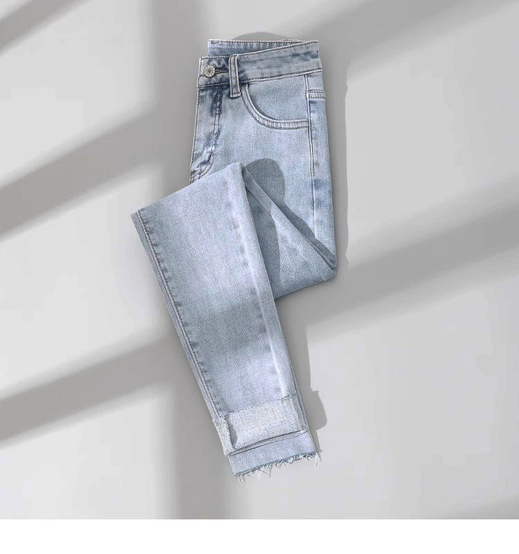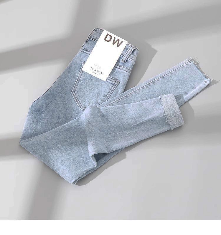 ハイウエストジーンズ レディース タイトフィット ペンシルパンツ 九分丈 ライトブルー 2025年秋新作 着痩せ効果 ライトカラー ペンシルパンツ