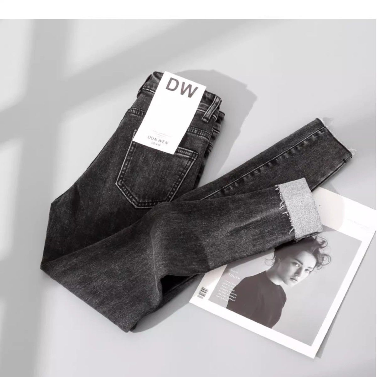 浅色牛仔裤女秋冬新款加绒加厚高腰显瘦大码紧身修身小脚铅笔裤子