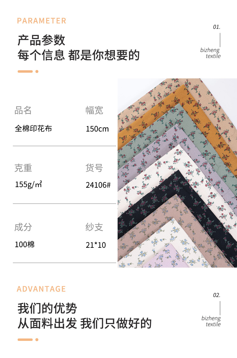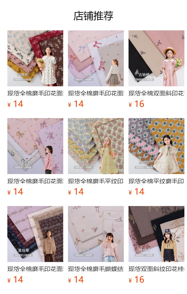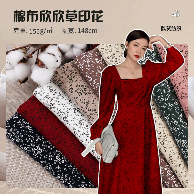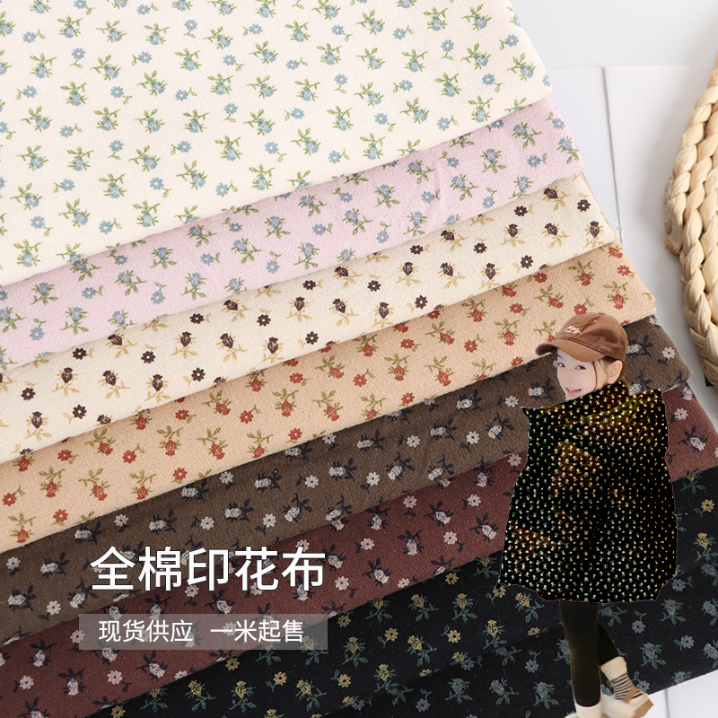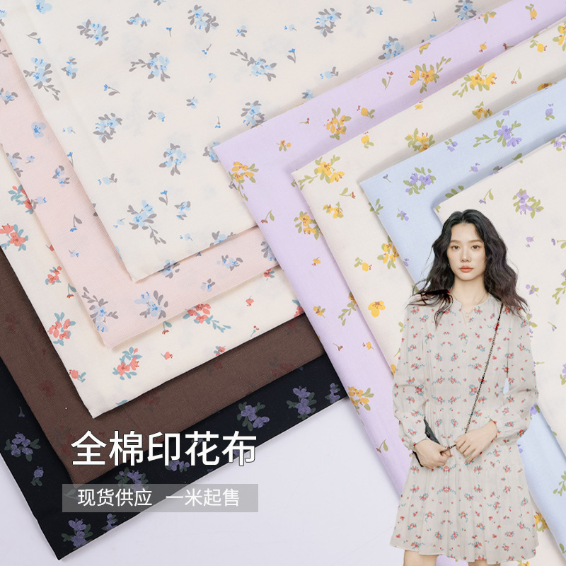 全棉平纹印花面料爪印花韩系风格碎花布女装服装衬衫发饰布料