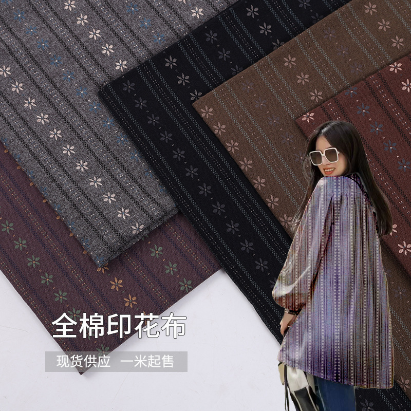 全棉平纹磨毛印花面料积雪花碎花布秋款家居裤子条纹印花布料