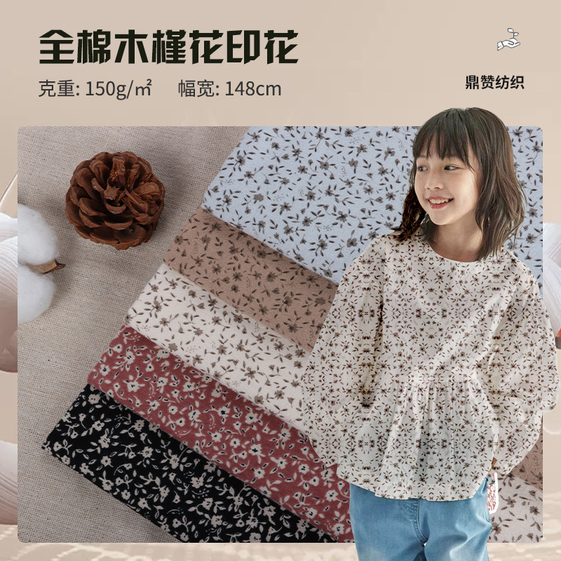 20s全綿プリント生地のムクゲ花砕花生地の純綿布帛毛磨きワンピース子供服生地