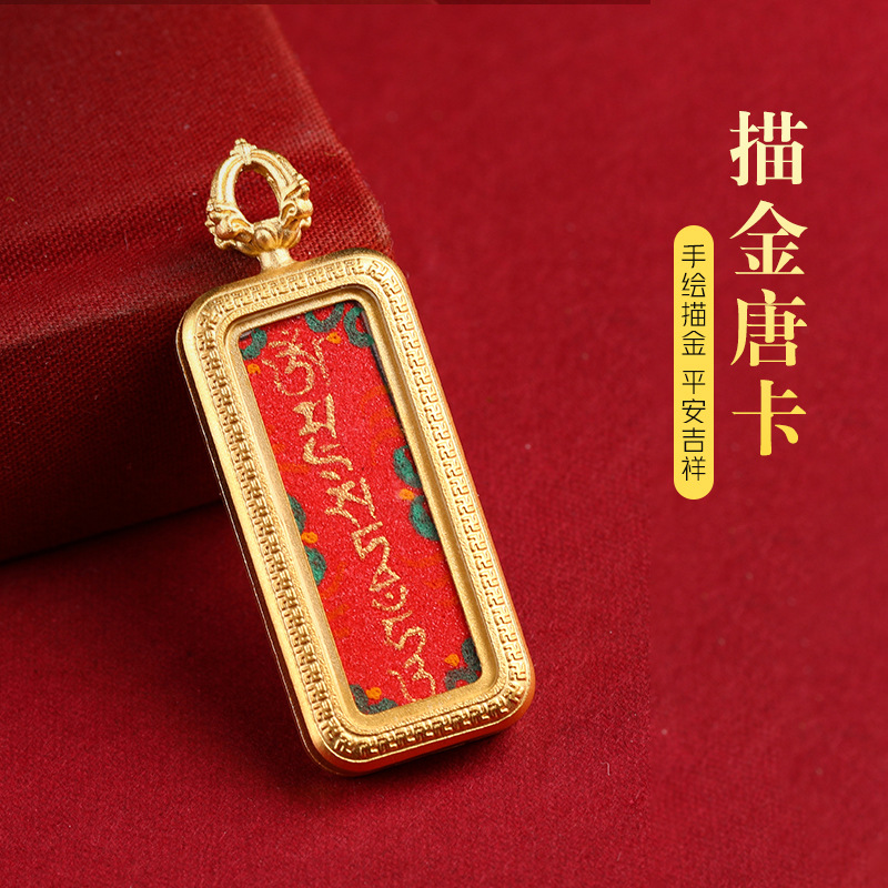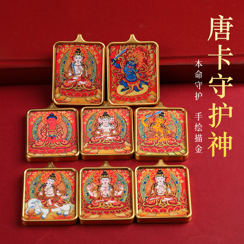 唐カードペンダントチベット手描き描金圧延機ラム前世今生黄財神観音小唐カードネックレスペンダント