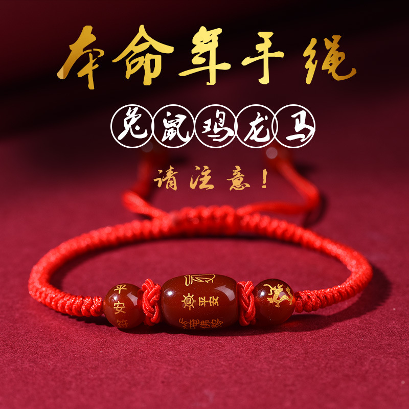 2024竜年のブレスレットの女性の赤い瑪瑙の赤い縄は十二生肖の守護神のブレスレットの本命の年の赤い縄の手の串を編みます。