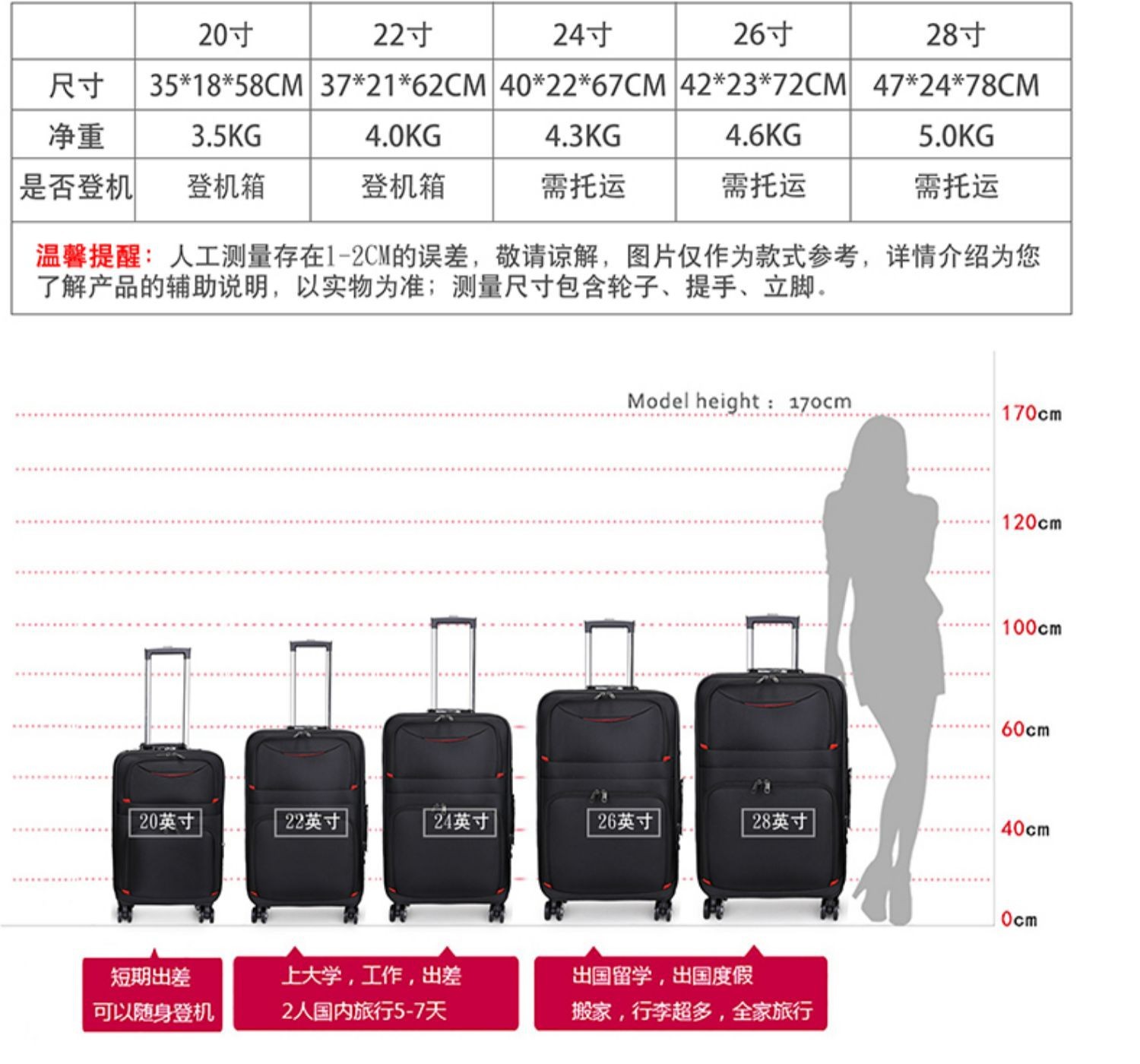 サイズ 18inch【搭乗可能】,20inch【搭乗可能】,22inch【委託販売が必要、持ち運びが簡単】,24inch【店長オススメの標準サイズ】,26inch【大きめサイズで二人旅行に最適】,28inch 【慎重に選んで掛け布団も収納可能】