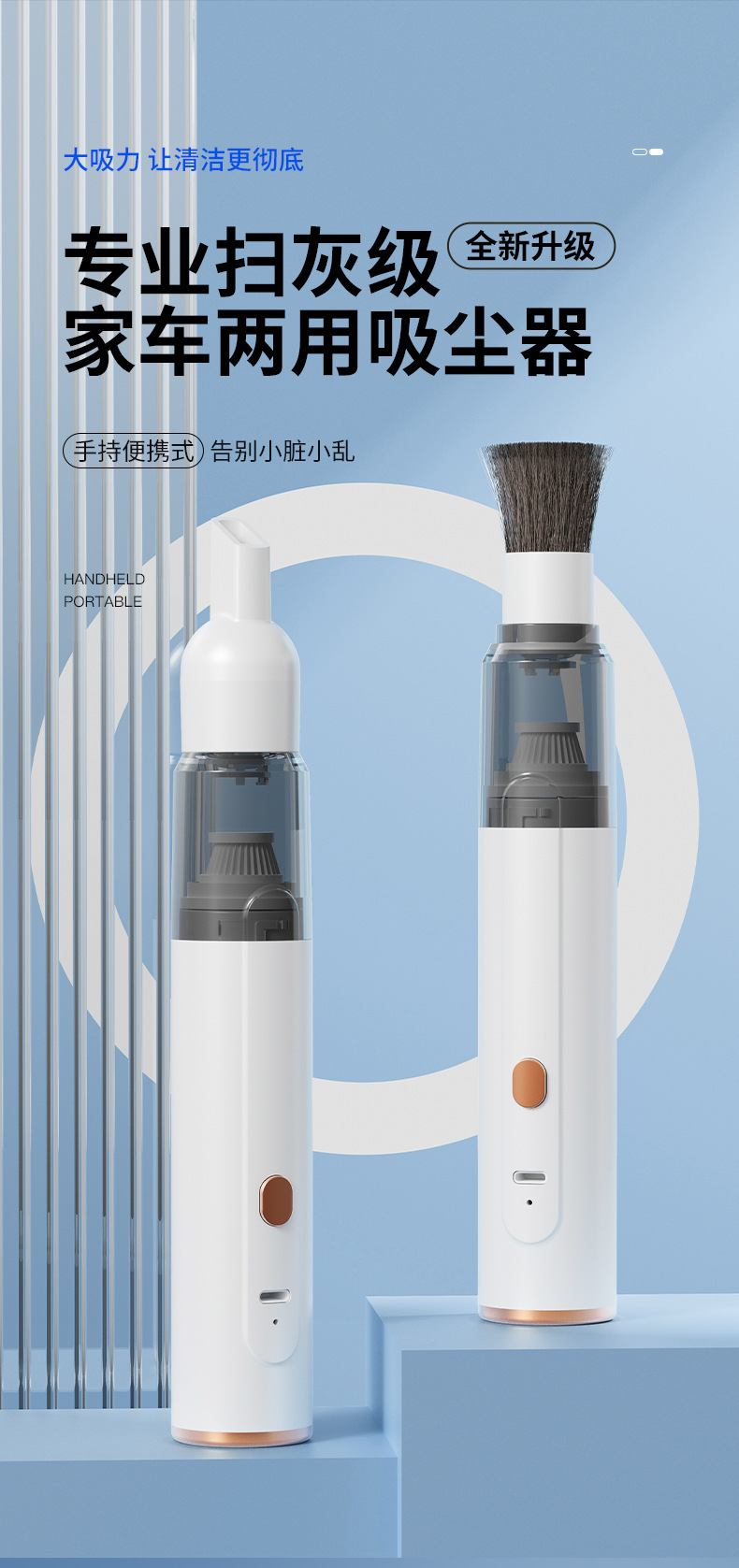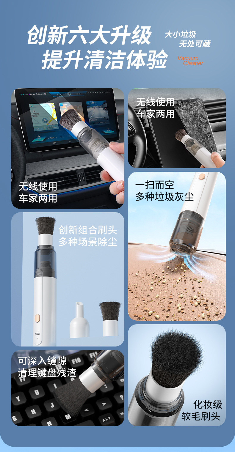 曼介吸尘器软毛刷无线车载吸尘器家用车用桌面随手式吸尘器