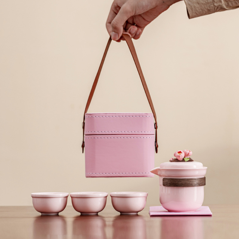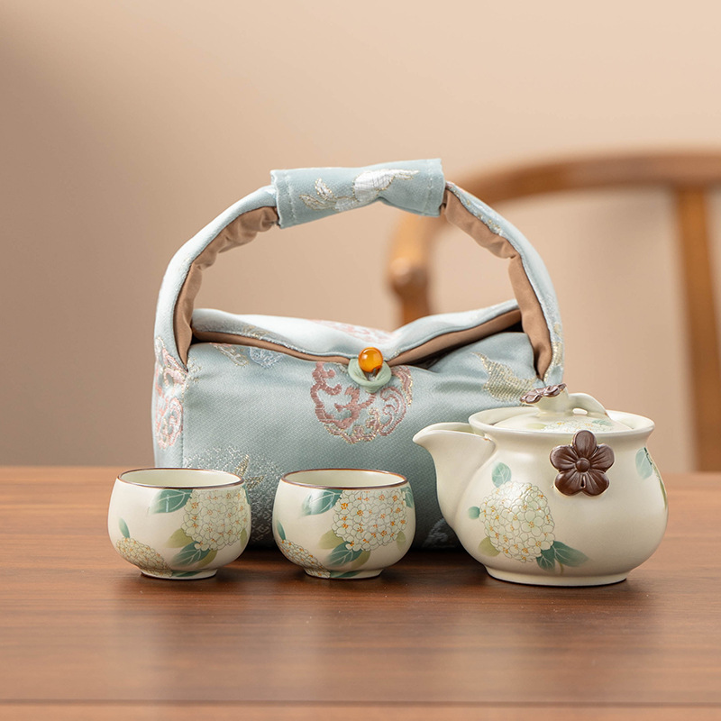 汝窯お土産携帯茶器セット屋外ティーポット陶磁器女性旅行茶器快客カップロゴ