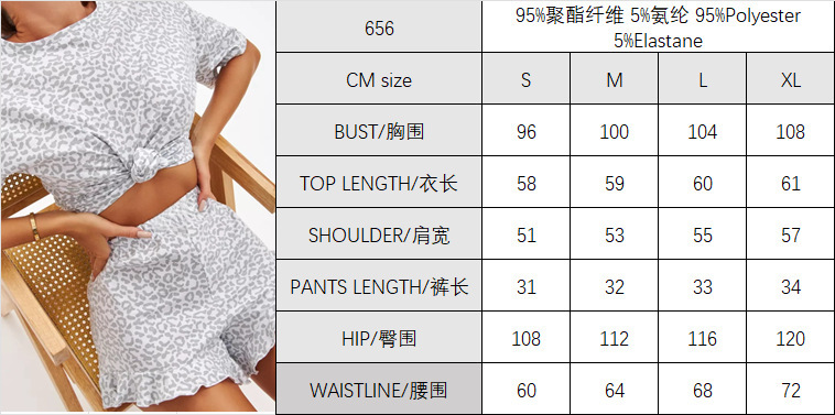 Женская пижама 女士睡衣跨境俄罗斯爆款印花豹纹