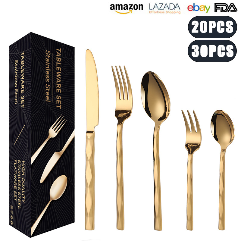 クロスボーダーひし形ナイフフォークスプーンセットステンレス洋食食器5メイン件ホテル洋食ステーキナイフデザートスプーンフォーク