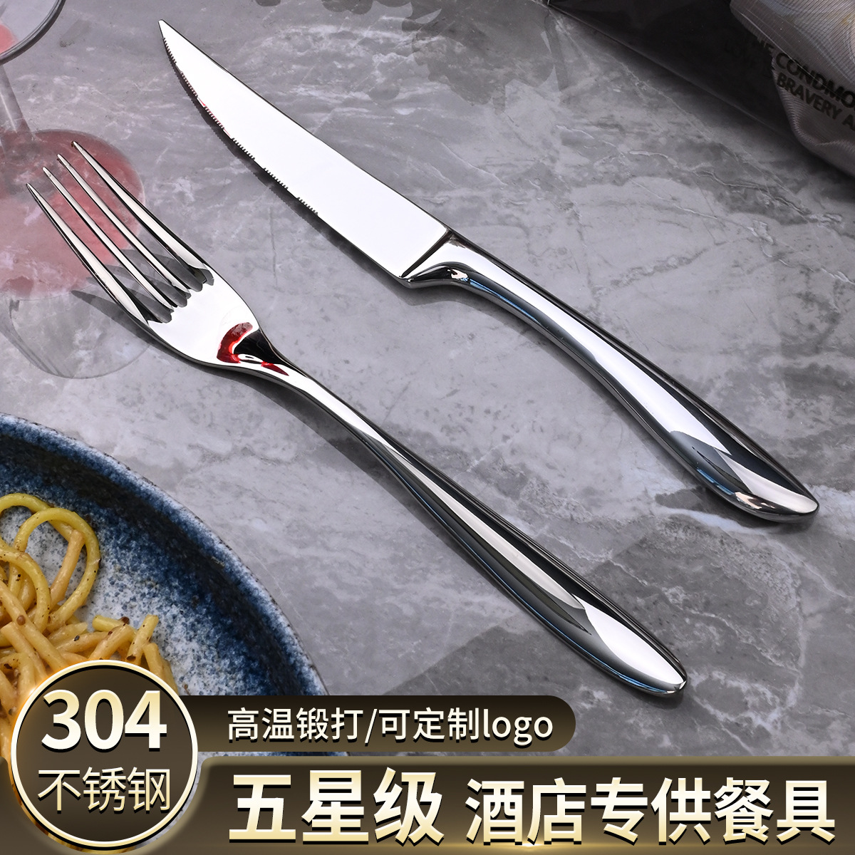 304不锈钢餐具优雅尖尾牛排西餐刀叉套装轻奢高档酒店光柄刀叉