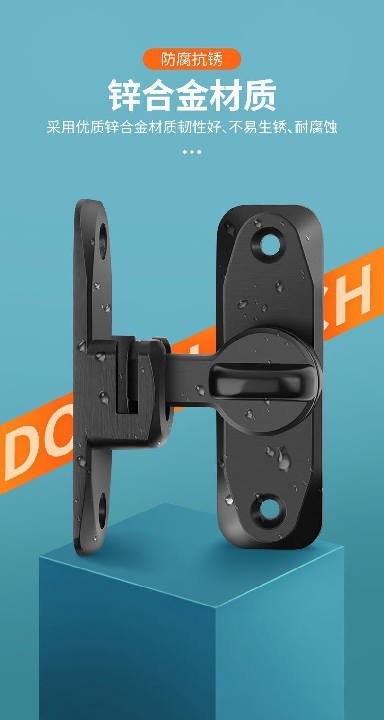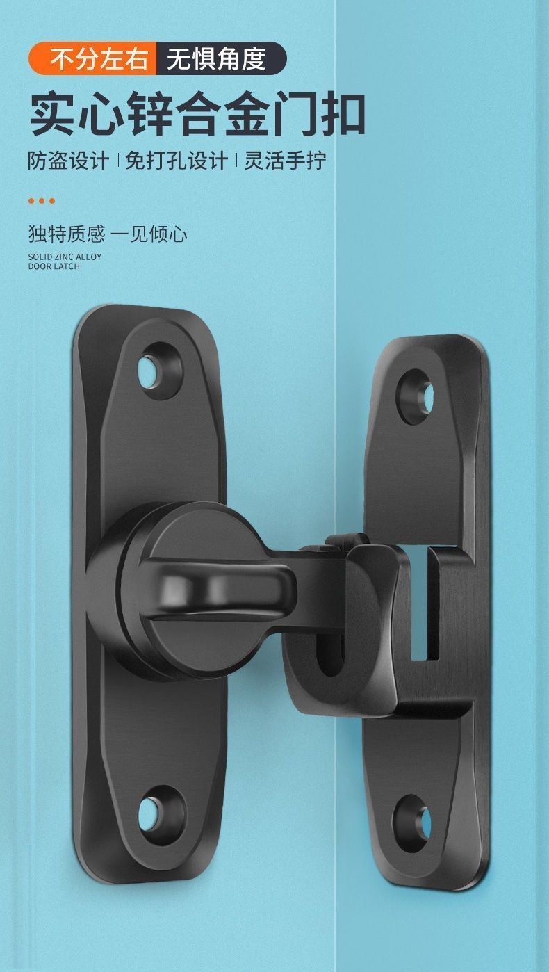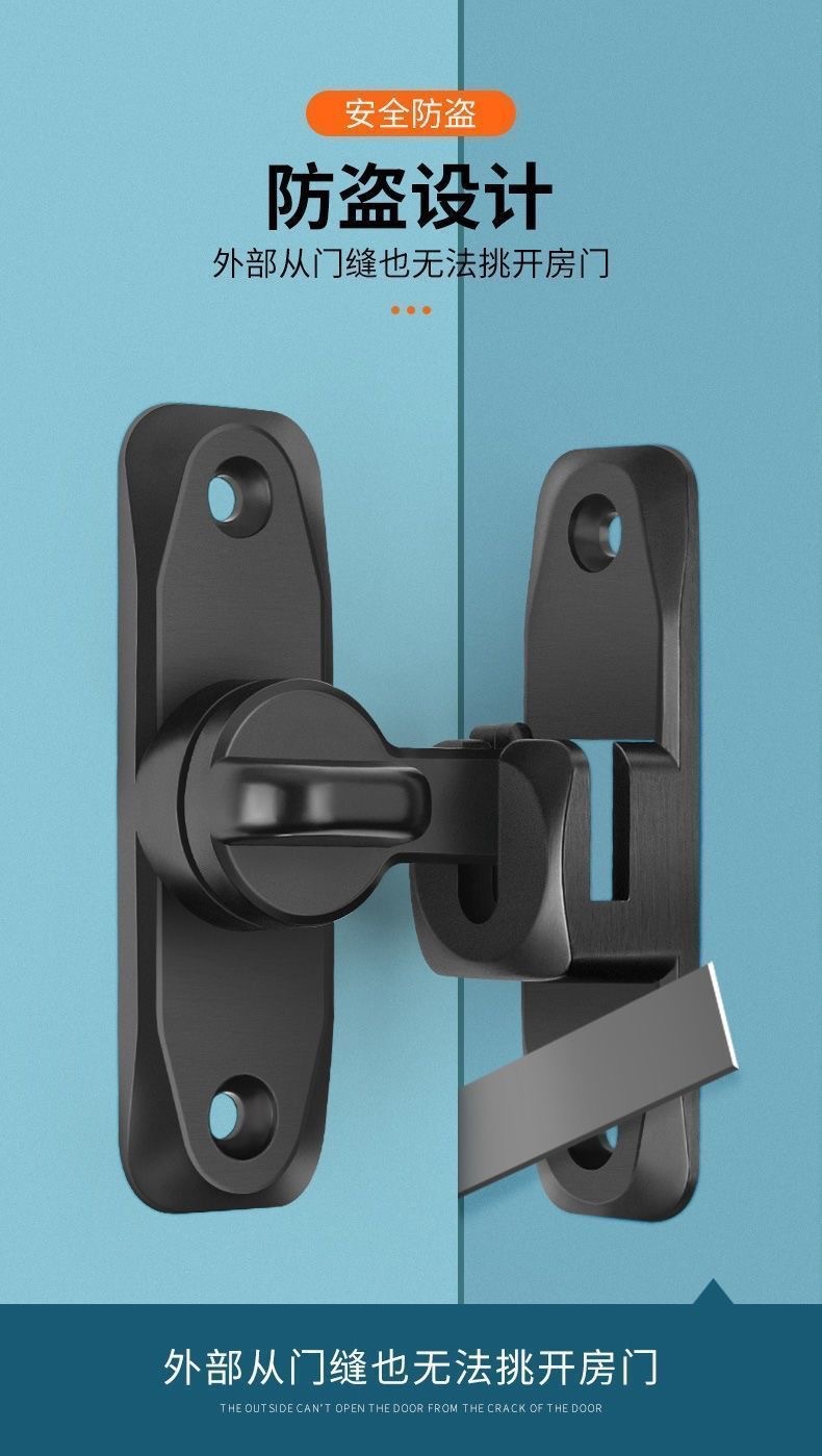 アルミ合金製ソリッドドアロック 家庭用90度180度盗難防止バックル 浴室用穴あけ不要プラグロック 厚型ロック