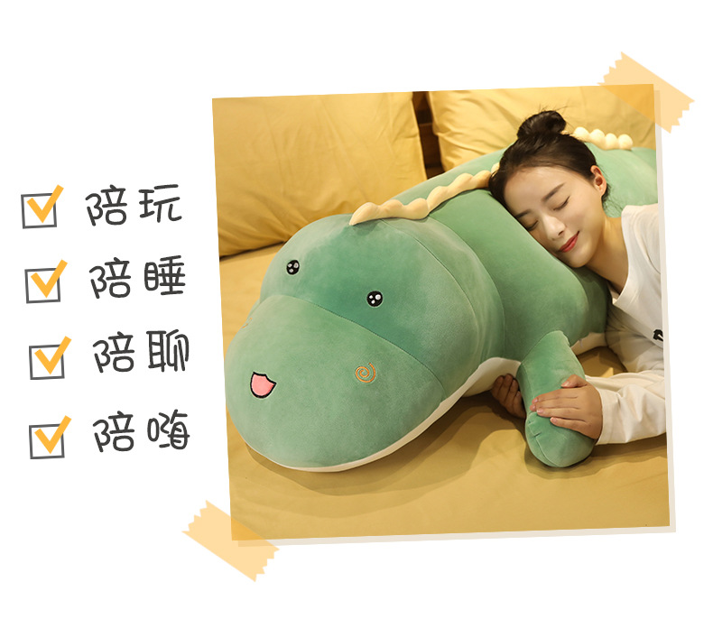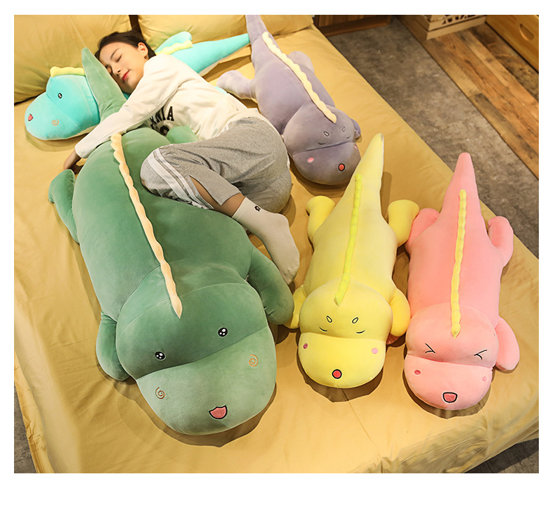 かわいい恐竜のぬいぐるみのベッドの上で寝ます。