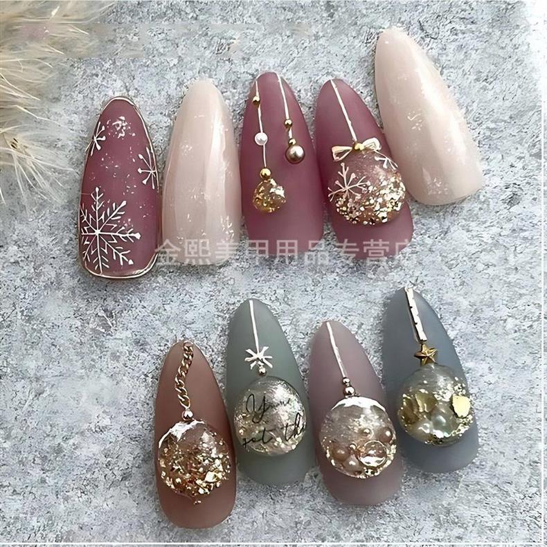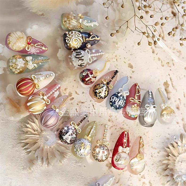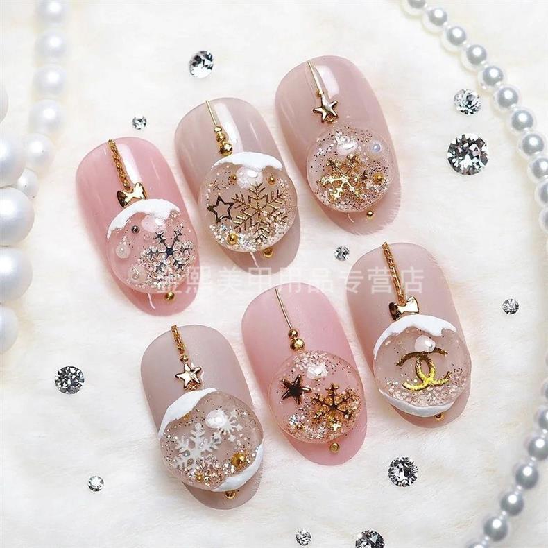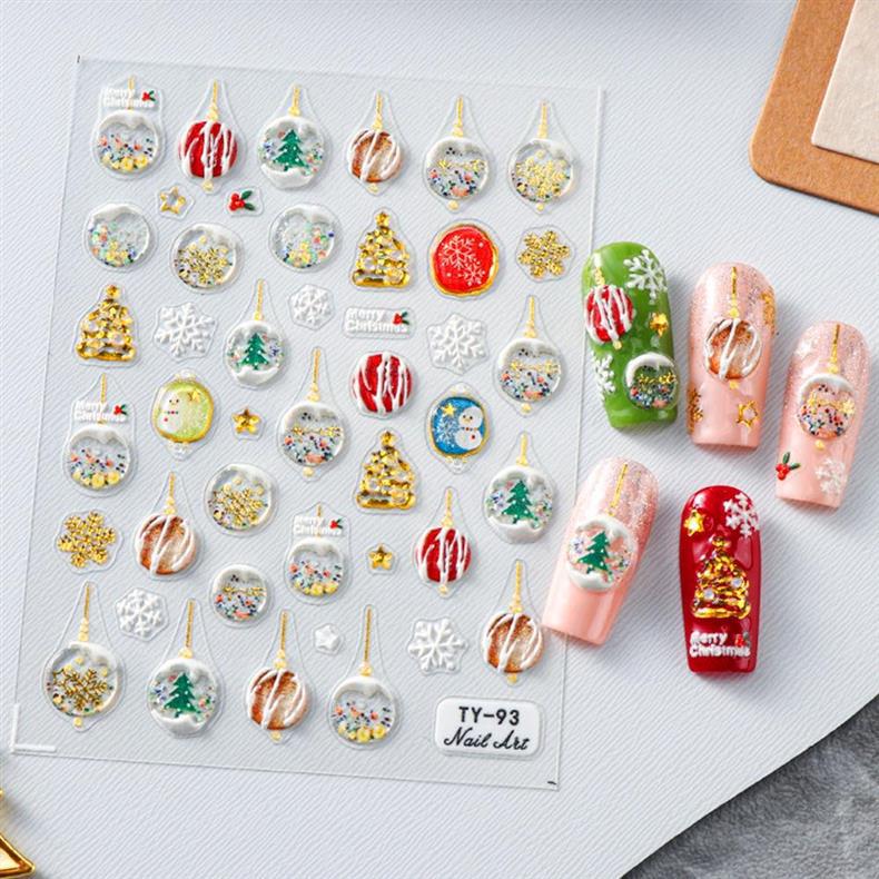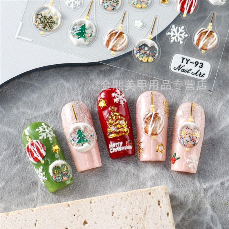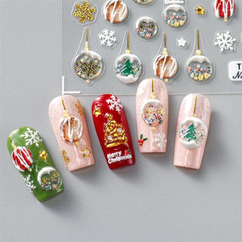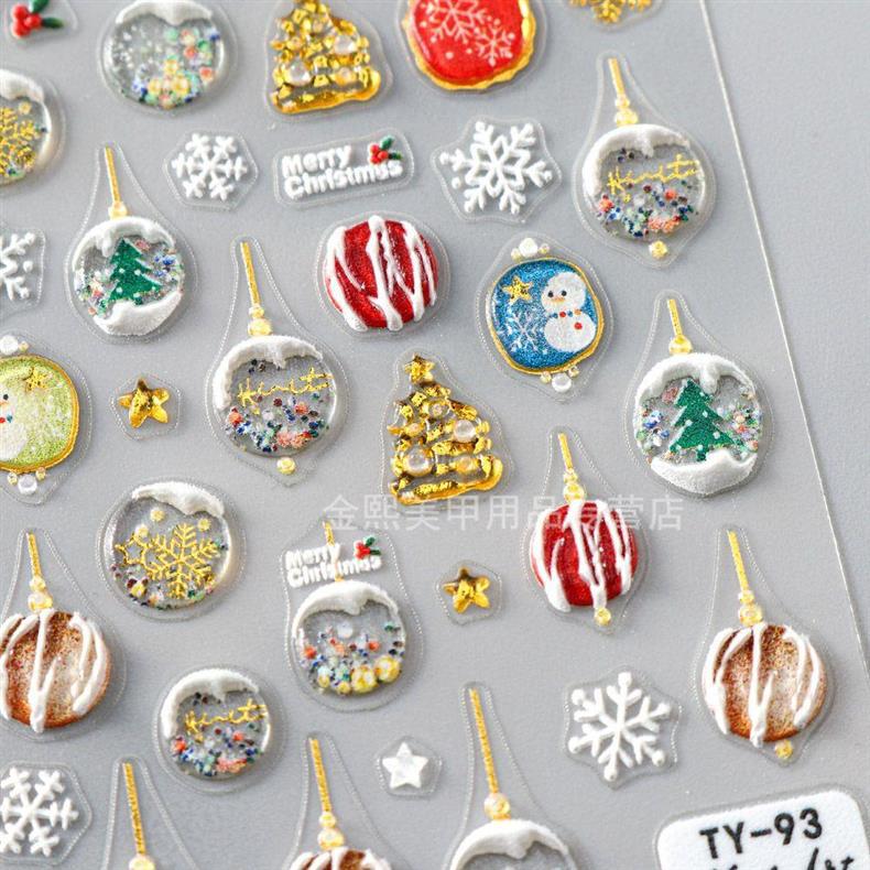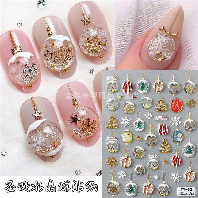 浮き彫り夢水晶球ネイルシールクリスマス雪花フラッシュ水晶球鈴雪だるまロマンチックなネイルシール